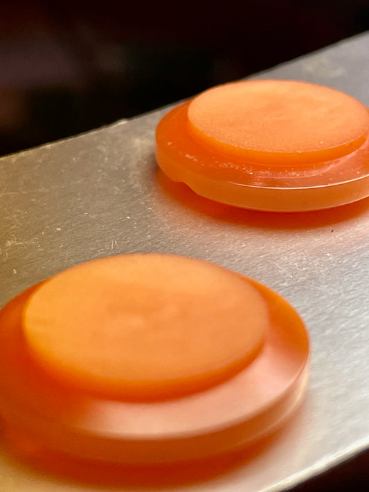 2 orange vtg plastic buttons | shank style | size 36/0.88" | new old stock | made in Japan