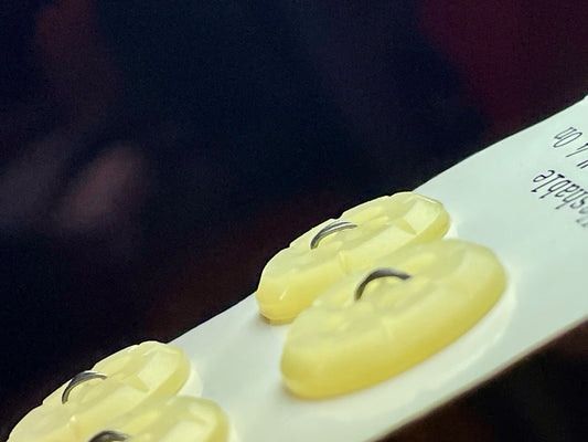 3 yellow 1970s vtg plastic buttons | 4 hole flat | size 28/0.75" | new old stock