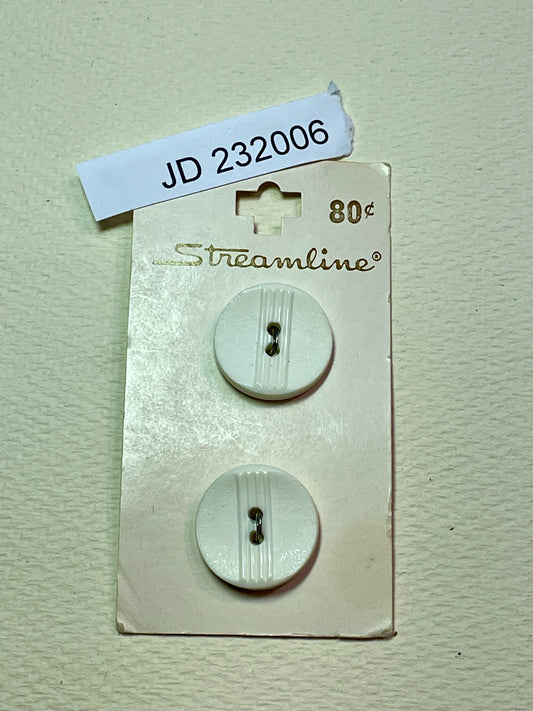 2 white vtg plastic buttons | 2 hole flat | size 23/0.58" | new old stock |