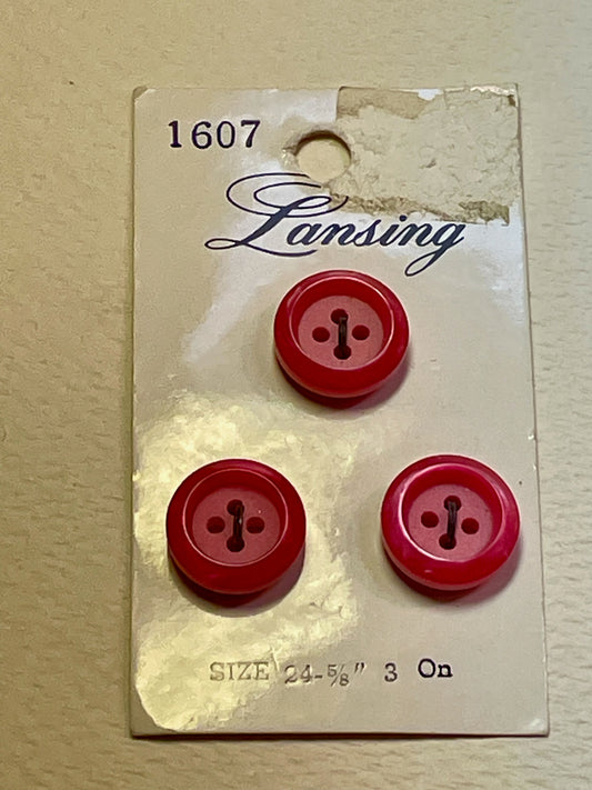 3 red 1970s vtg plastic buttons | 4 hole flat | size 24/0.63" | new old stock