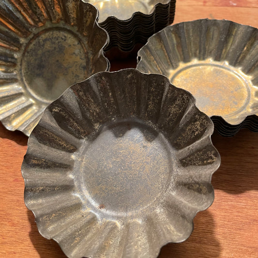 Round steel/tin tart pans / vintage & antique / mini single serving bakeware decor cookie