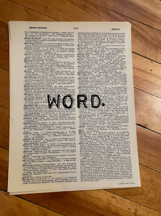 Art Print: Word. One-word (Word.) Quotation Printed on a Repurposed Dictionary Book Page