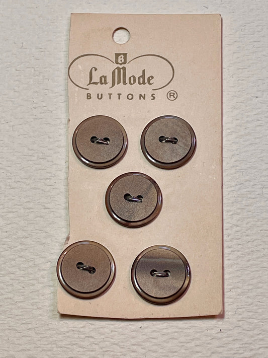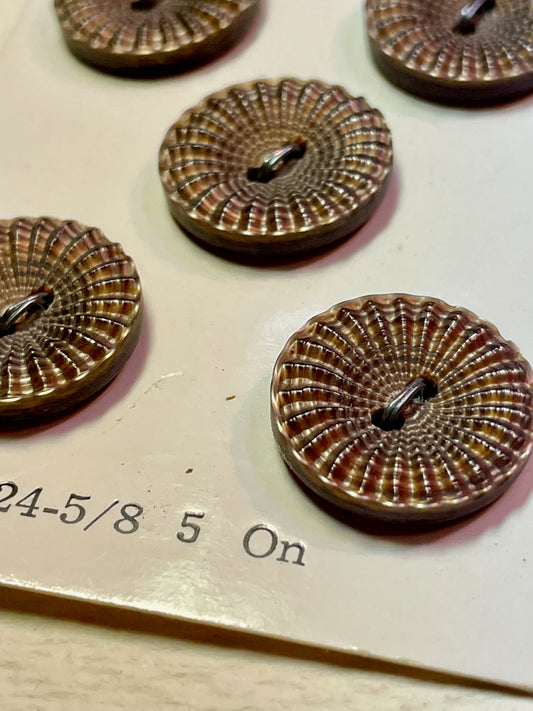 5 brown vtg plastic buttons | 2 hole flat | size 24/0.63" | new old stock