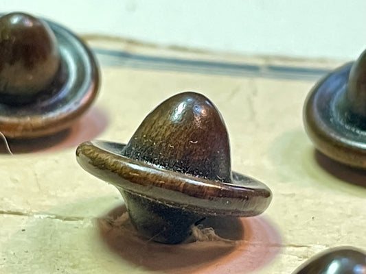 7 brown 1950s vtg plastic buttons | shank style | size 16/0.39" | new old stock