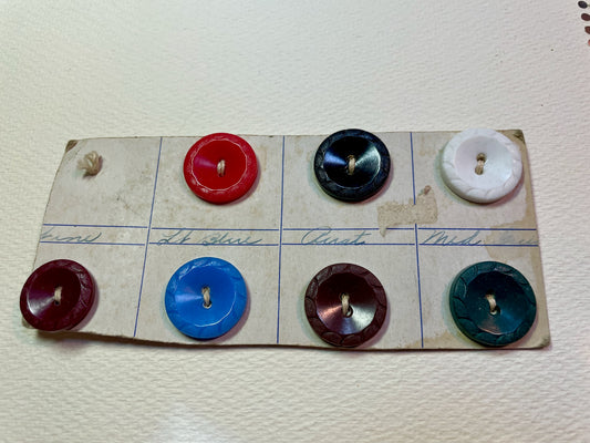 6 1950s vtg plastic button sample card | 2 hole flat | size 24/0.63" | new old stock