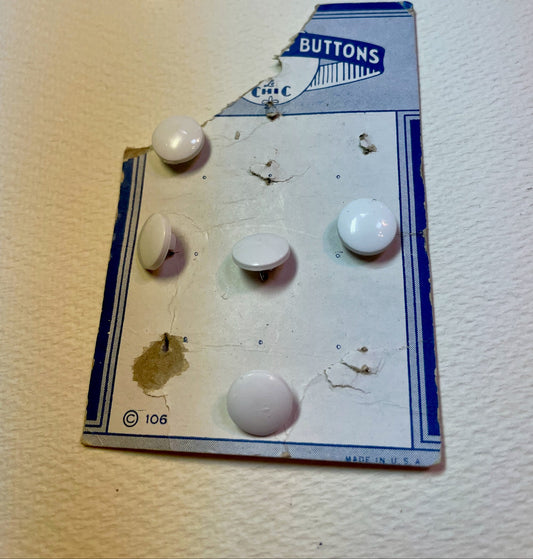 5 white 1950s vtg plastic buttons | shank style | size 9/0.24" | new old stock | made in USA