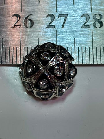 1 silver & black 1980s metal & rhinestone button | shank style | size 15/0.37" | new old stock | made in Taiwan