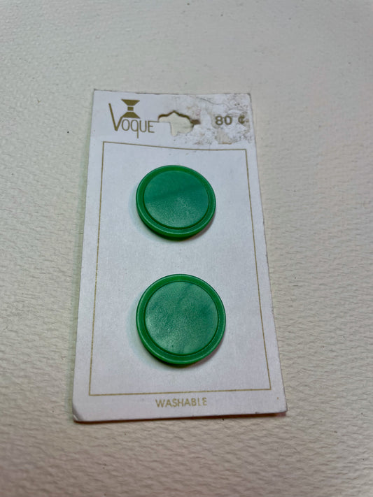2 green 1970s vtg plastic buttons | shank style | size 36/0.88" | new old stock | made in Holland