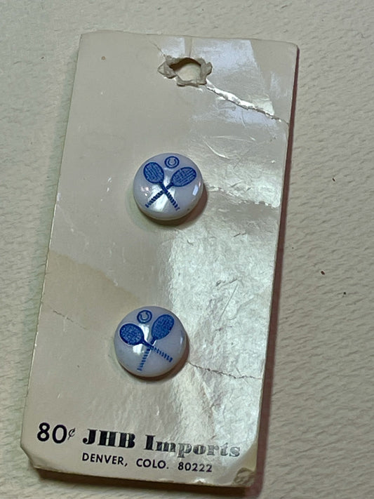 2 tennis-themed 1980s vintage novelty plastic buttons | shank style | size 13/0.33" | new old stock |