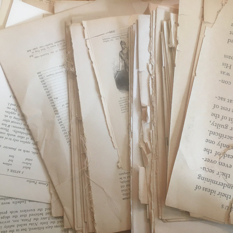one half pound papier mâché book page mix / absorbent, matte book pages with text for sculpture, piñatas, surface repair, decoupage, DIY