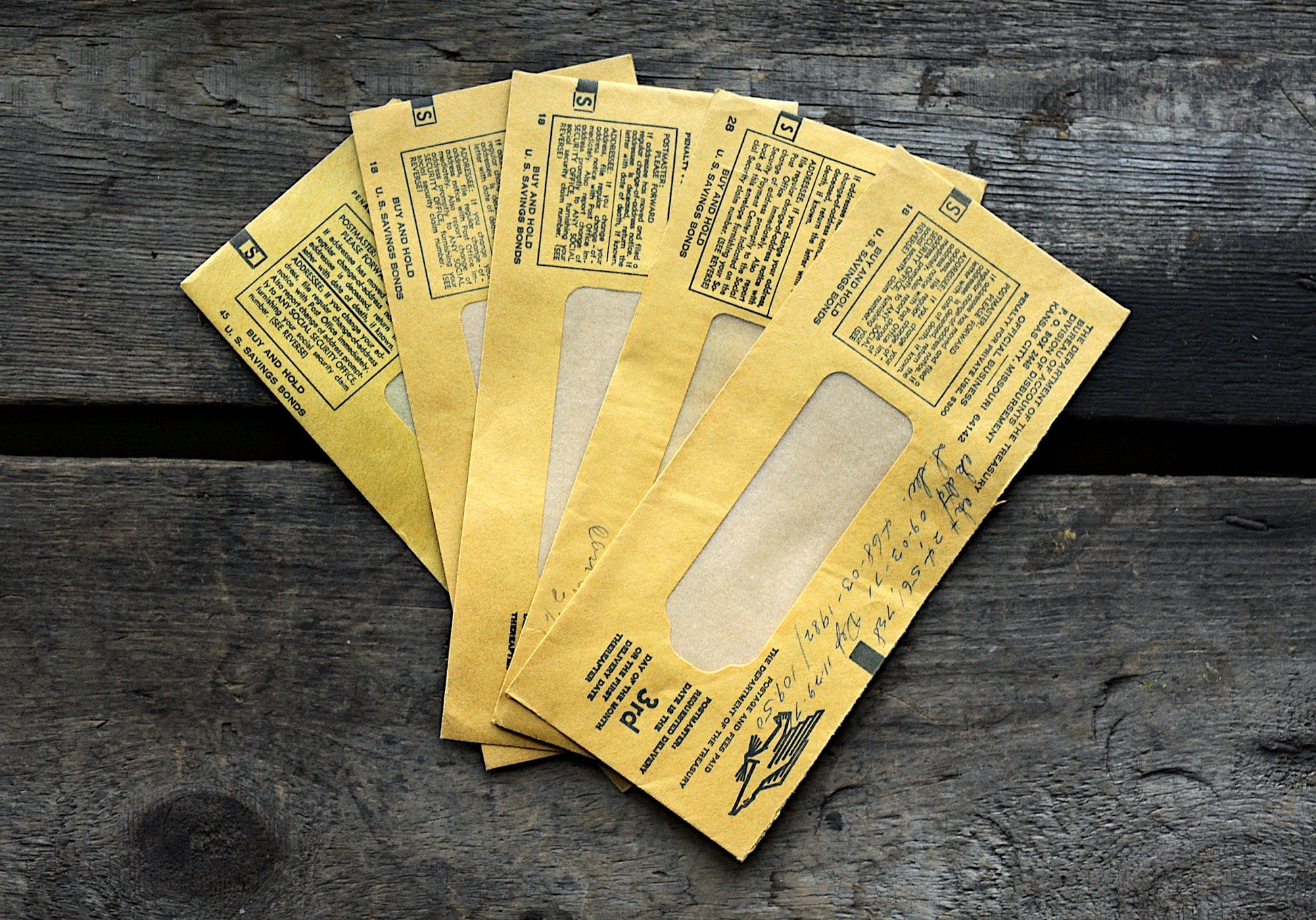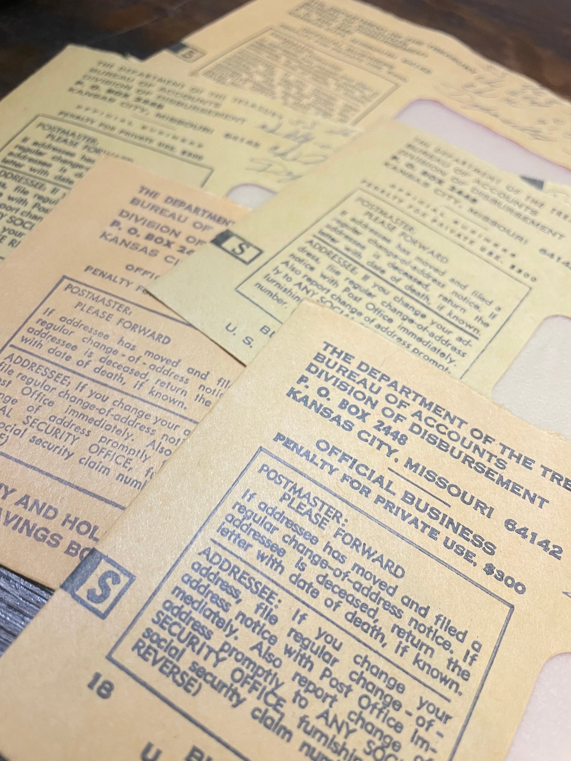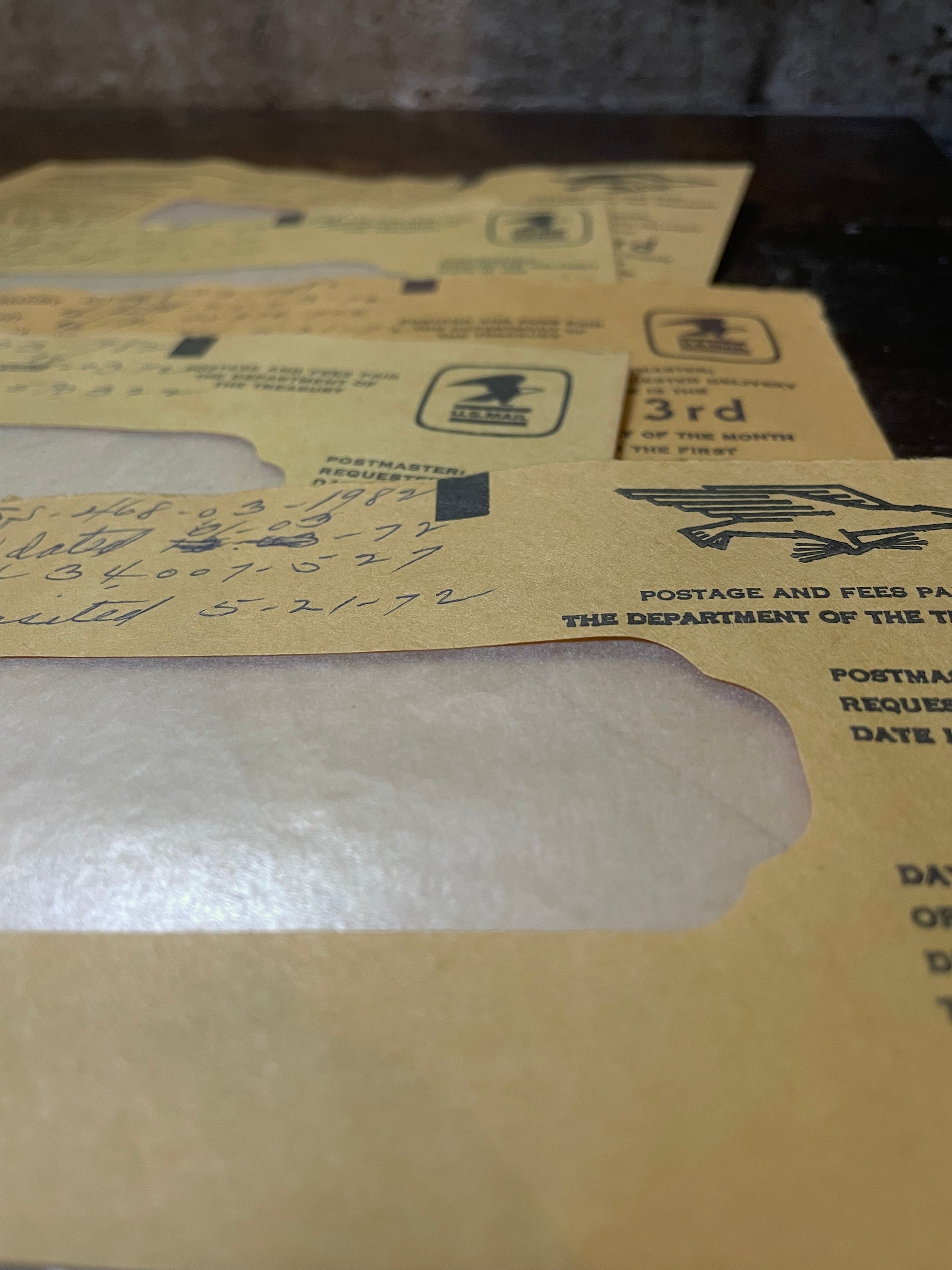 Mid-20th century vintage manila envelopes, originally used for official business, now ready for creative or prop use. Set of 5 (photos representative)