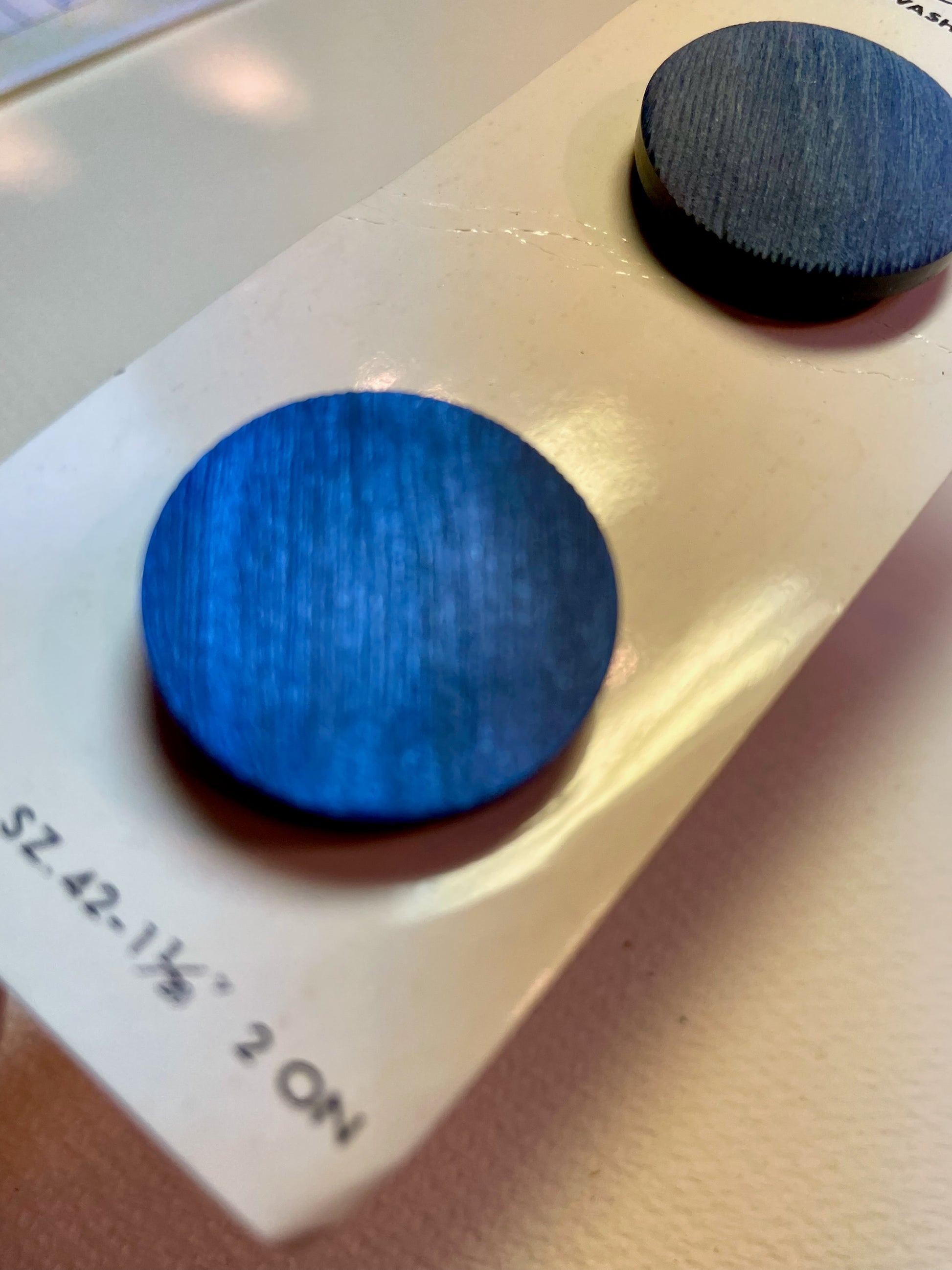 2 blue 1960s vtg plastic buttons | shank style | size 42/1.05" | new old stock | made in Japan