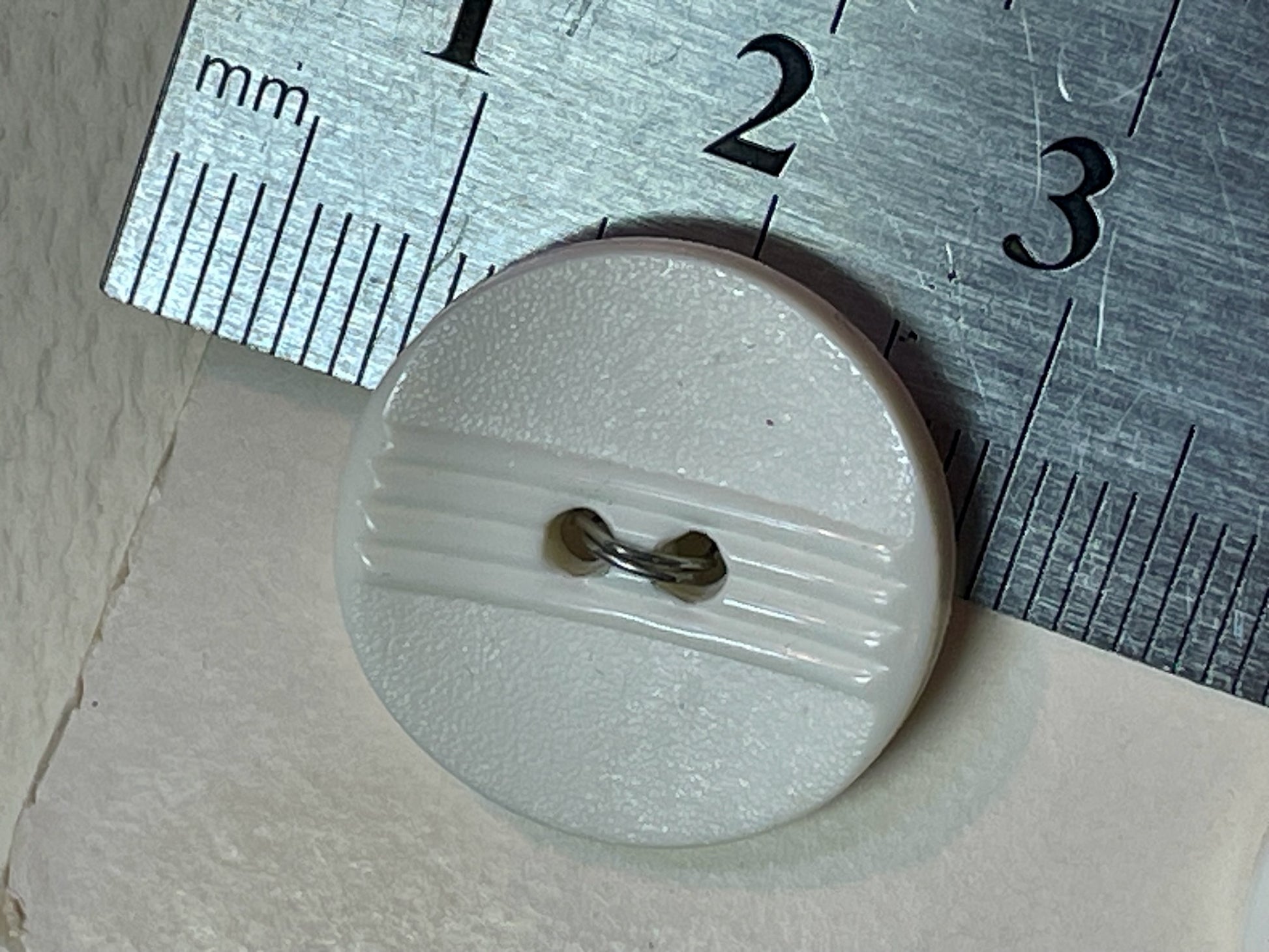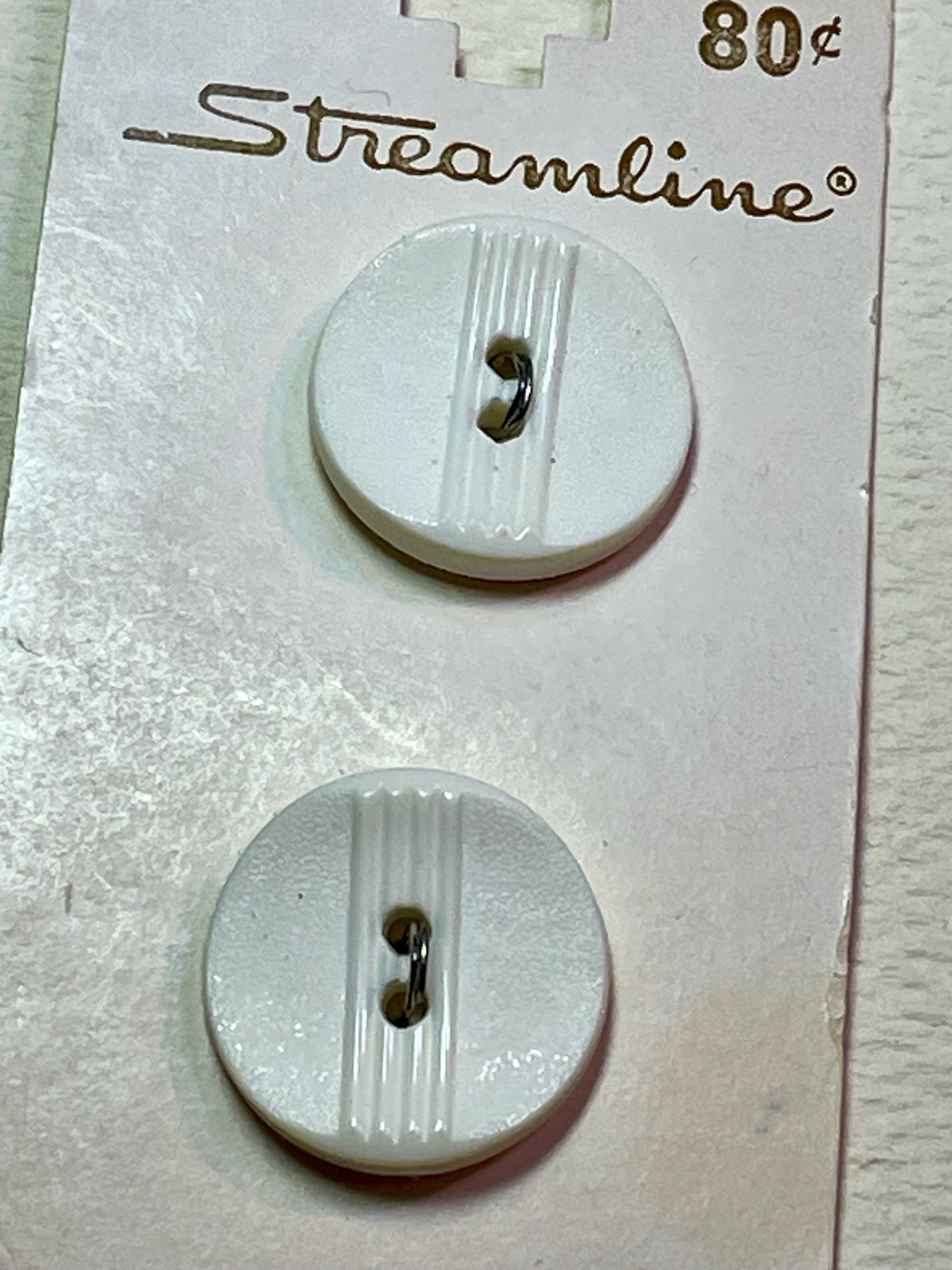 2 white vtg plastic buttons | 2 hole flat | size 23/0.58" | new old stock |