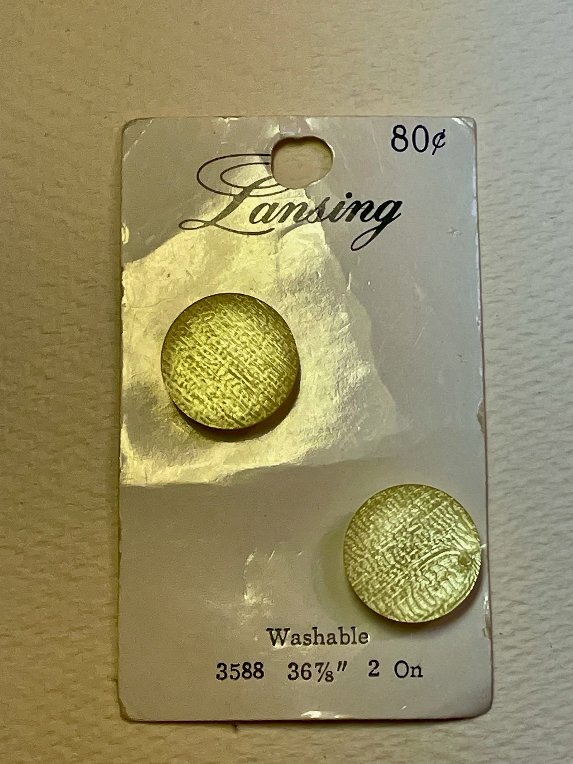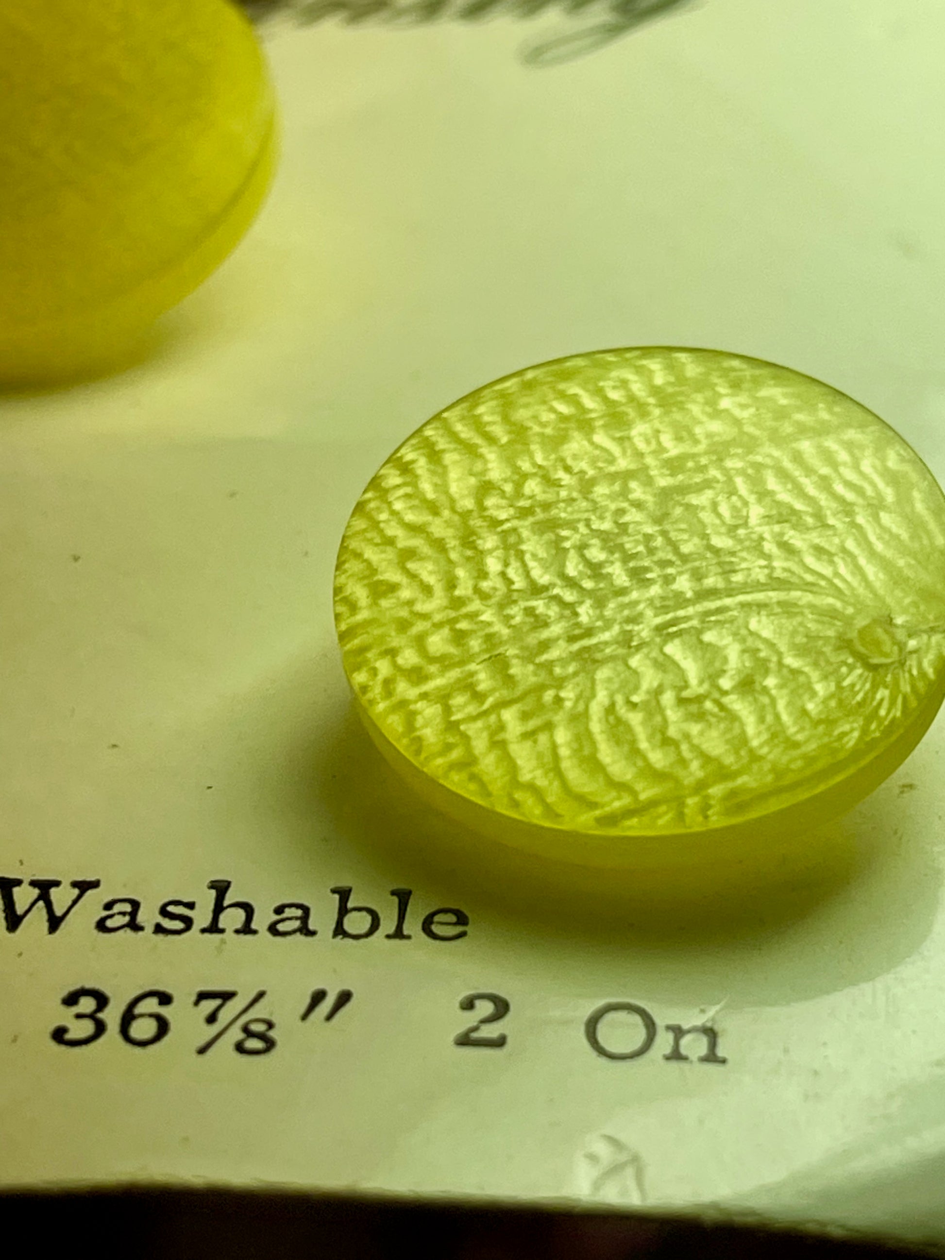 2 yellow 1960s vtg plastic buttons | shank style | size 36/0.88" | new old stock | made in USA