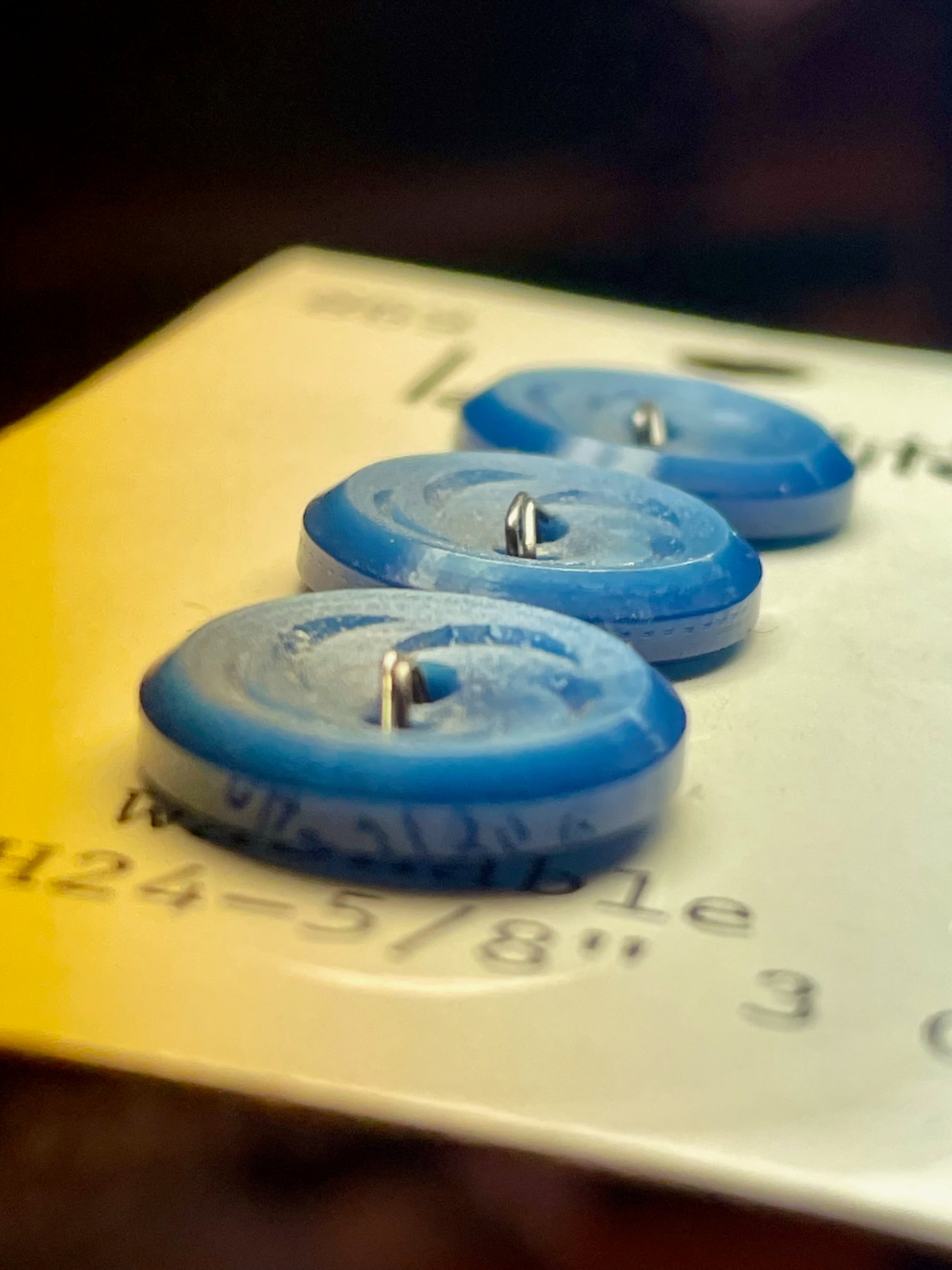 3 blue vtg plastic buttons | 2 hole flat | size 24/0.63" | new old stock |
