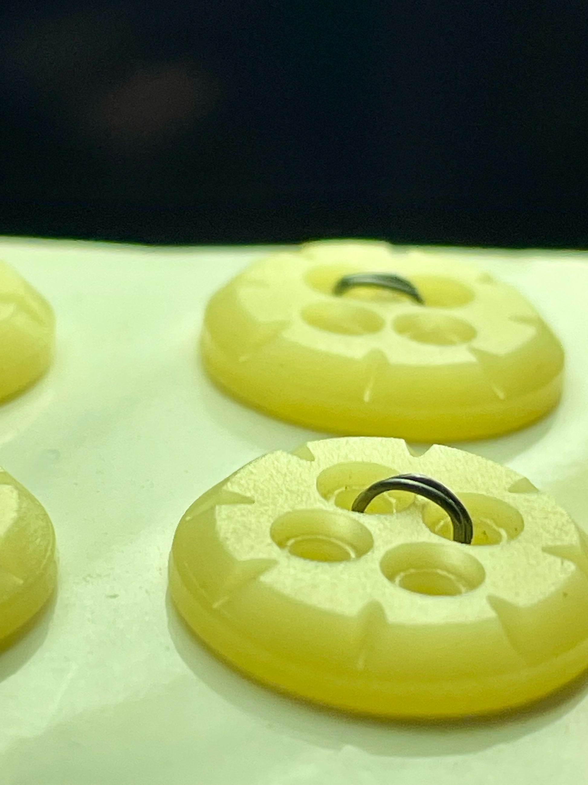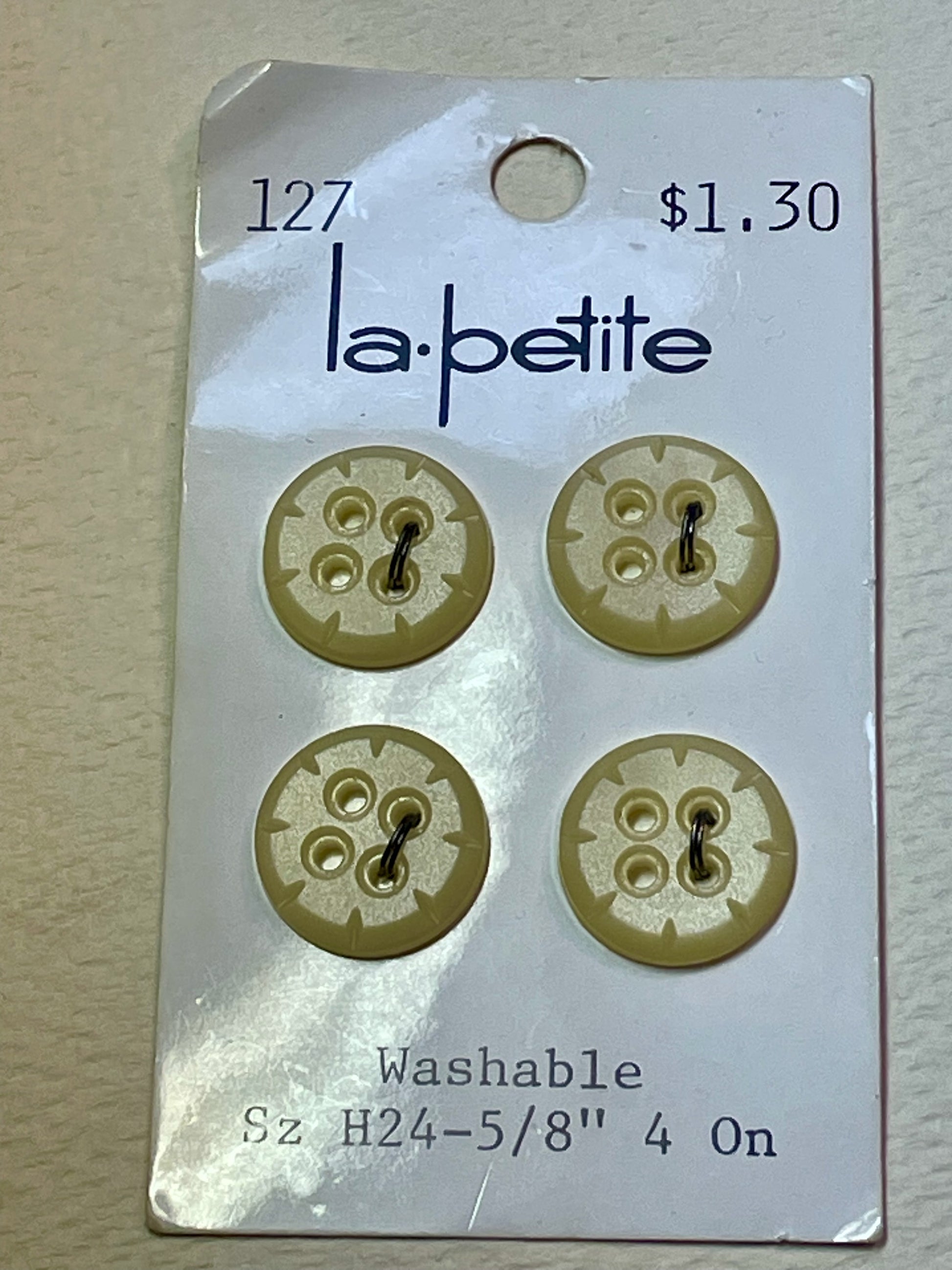 3 cream vtg plastic buttons | 4 hole flat | size 30/0.75" | new old stock