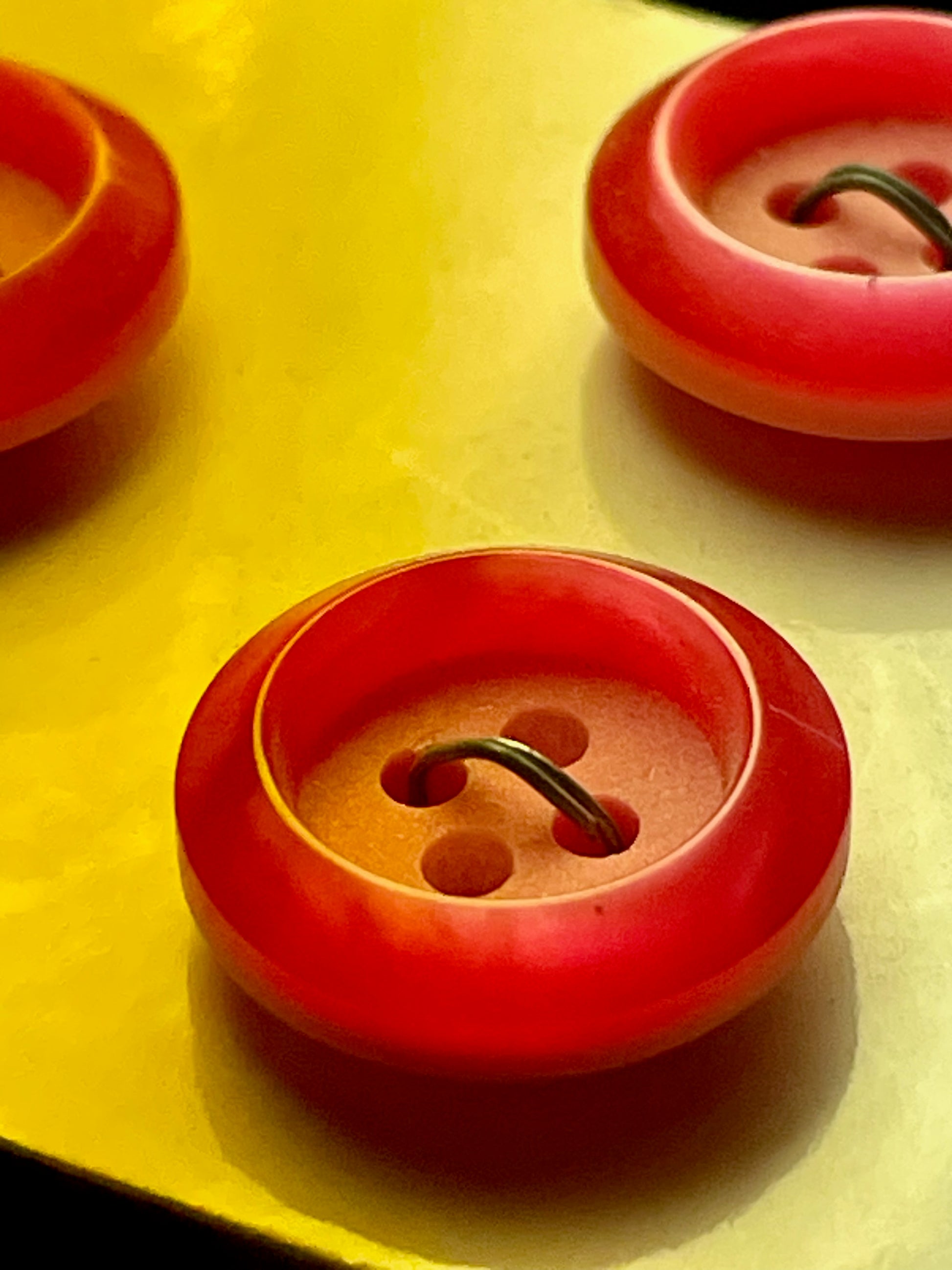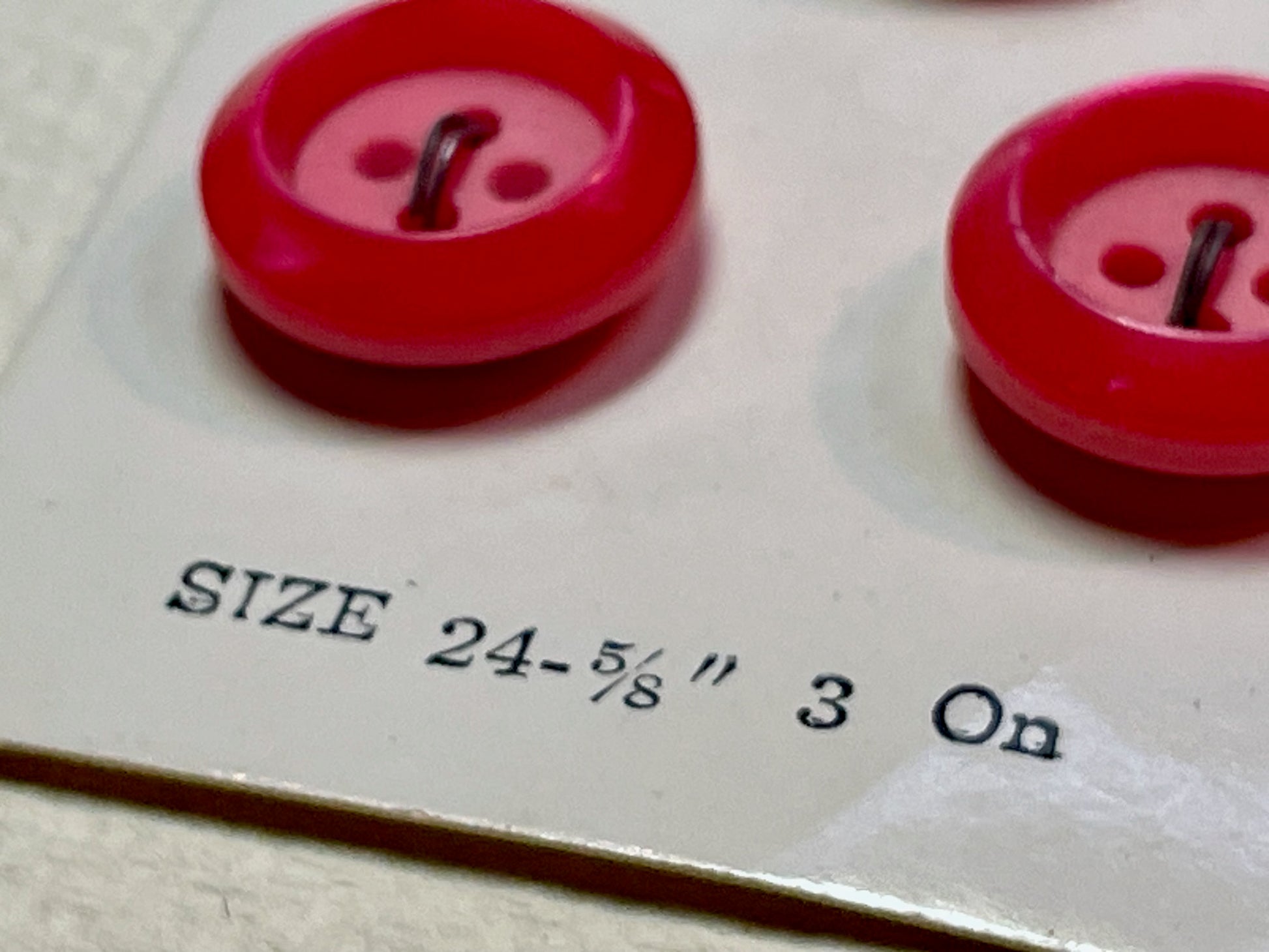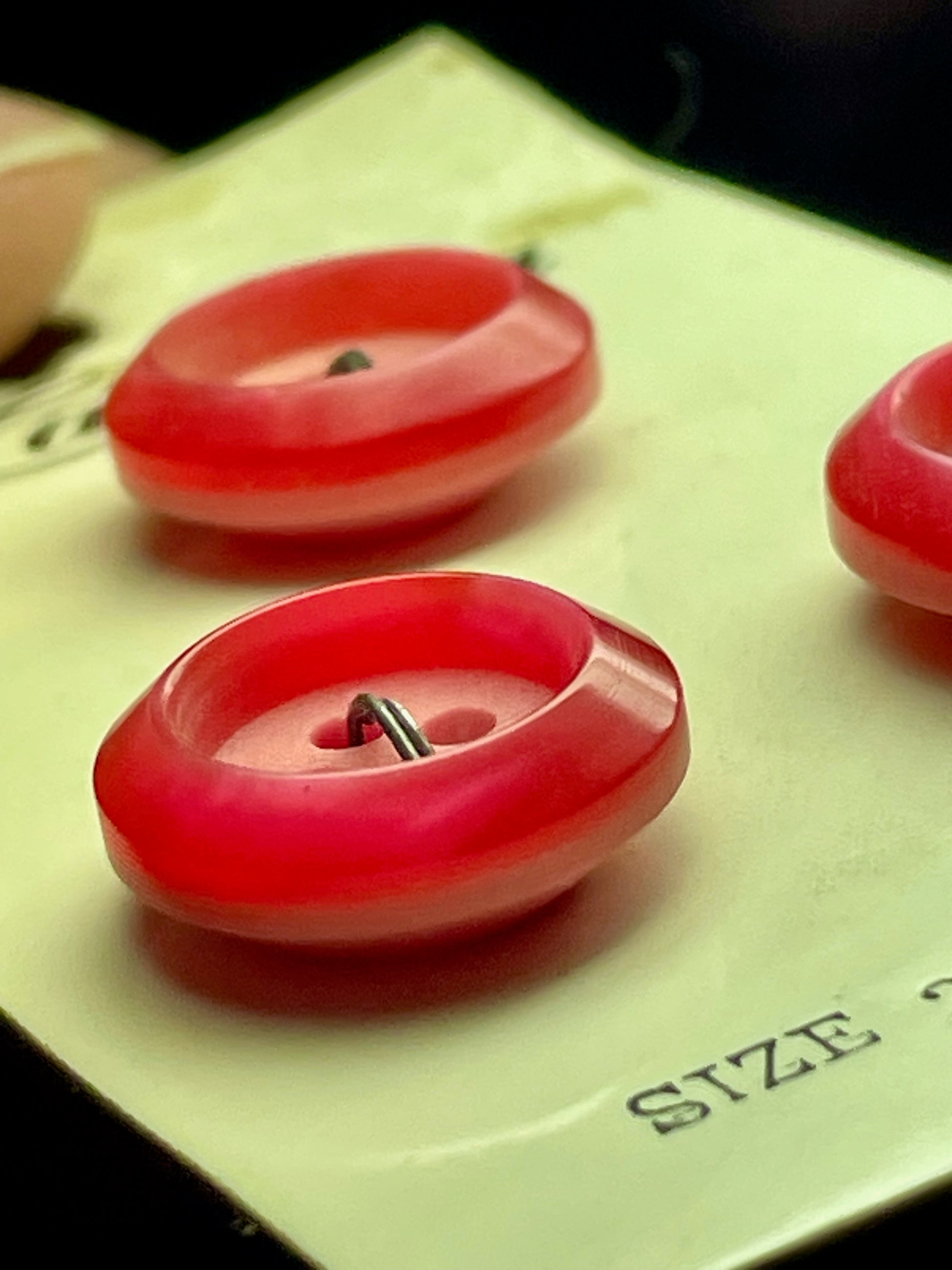 3 red 1970s vtg plastic buttons | 4 hole flat | size 24/0.63" | new old stock