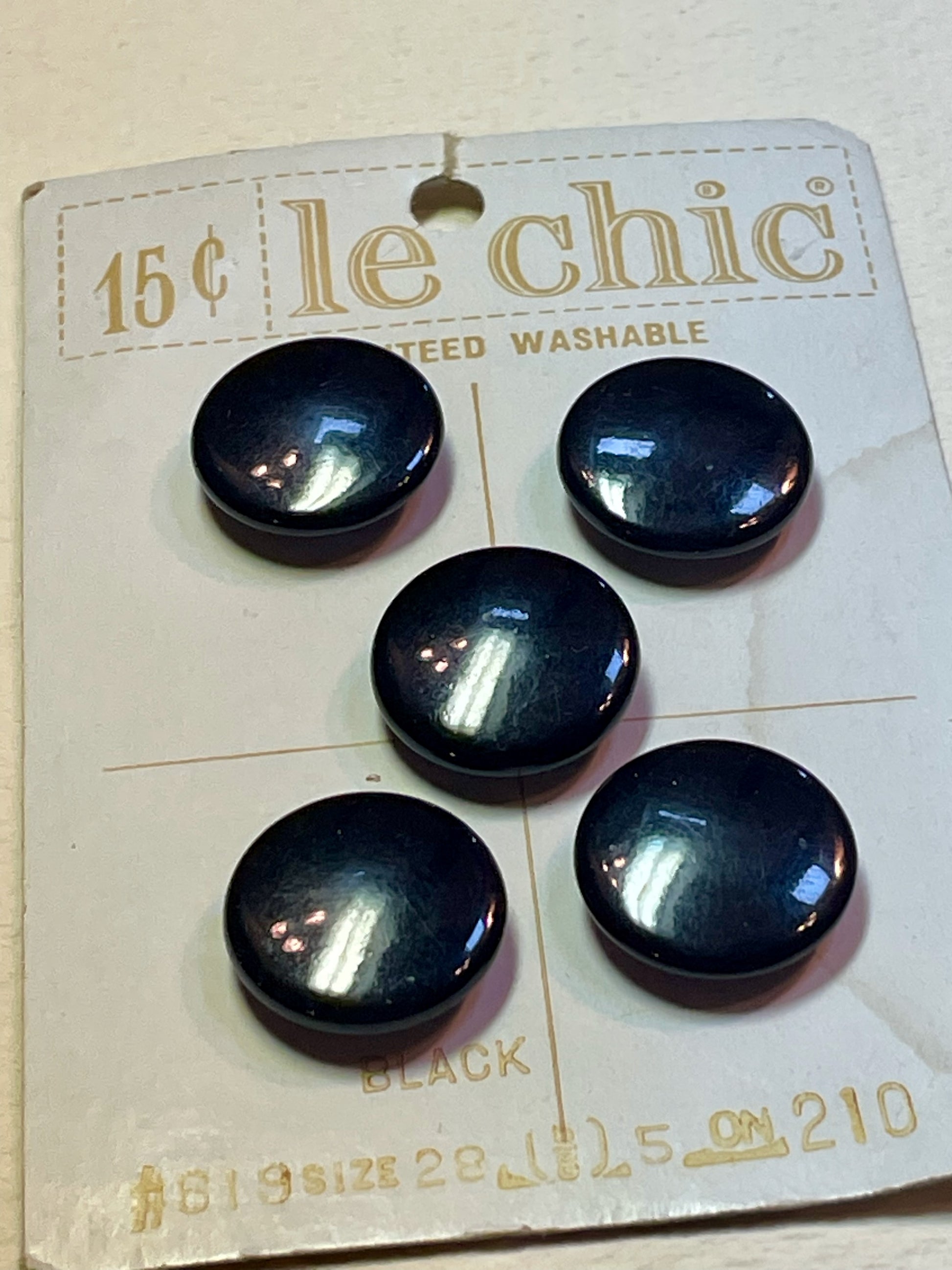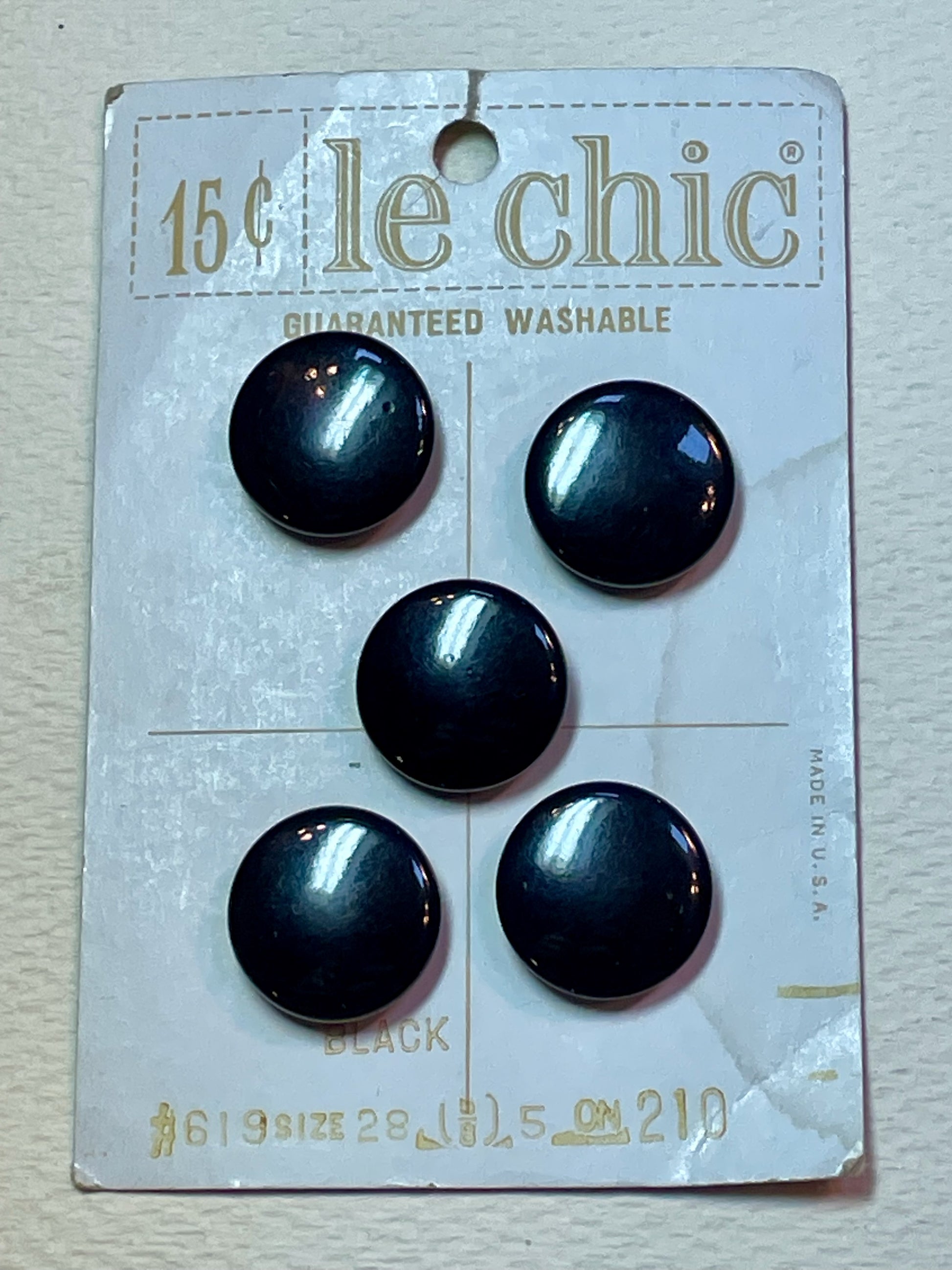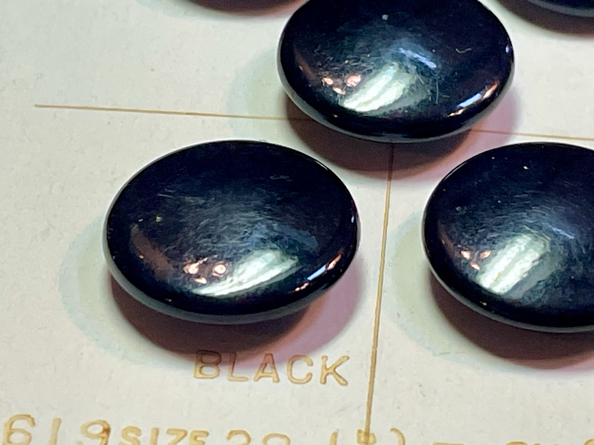 5 black 1950s vtg plastic buttons | shank style. | size 27/0.66" | new old stock | made in USA