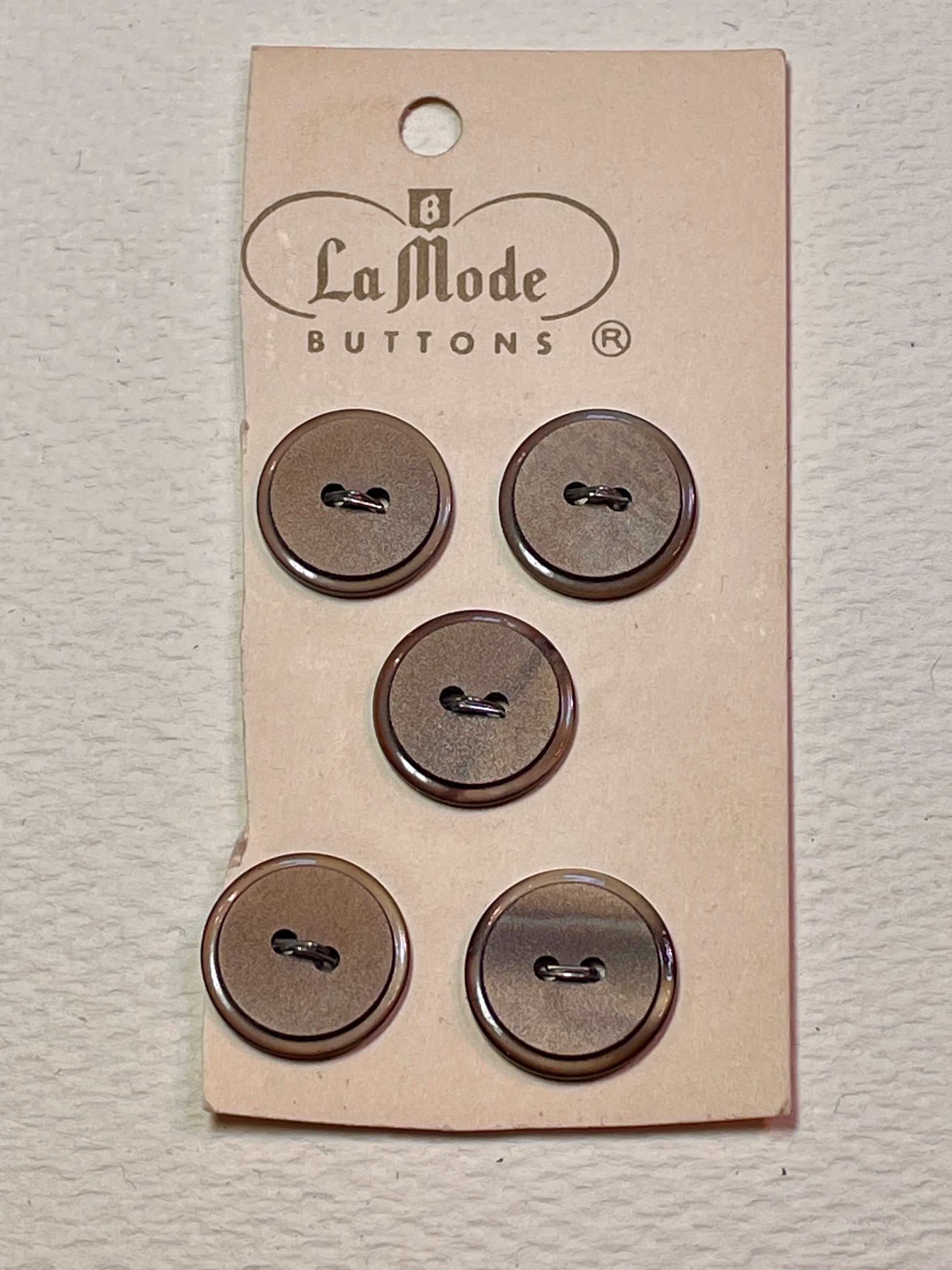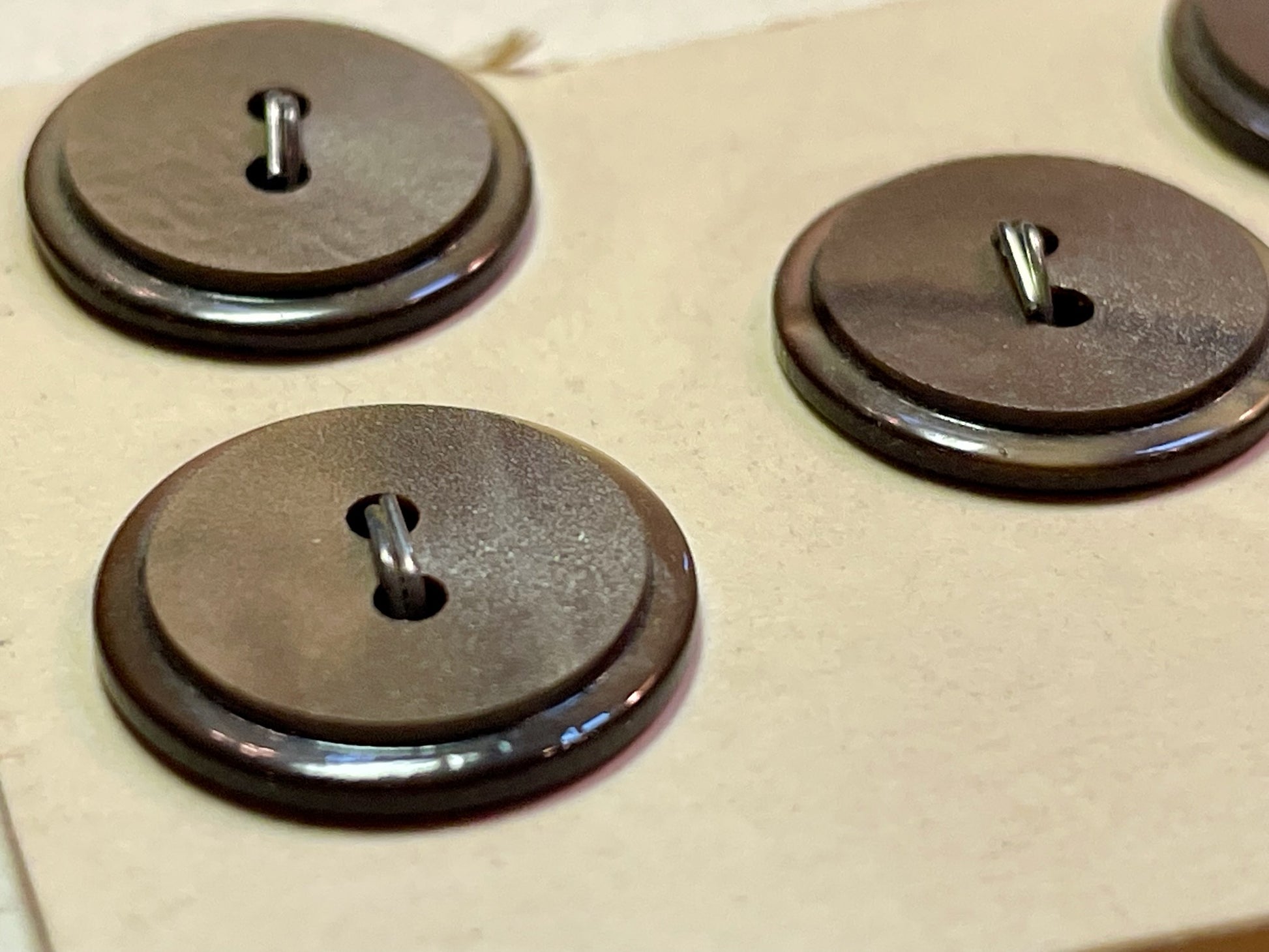 5 brown 1960s vtg plastic buttons | 2 hole flat | size 15/0.37" | new old stock | made in Holland