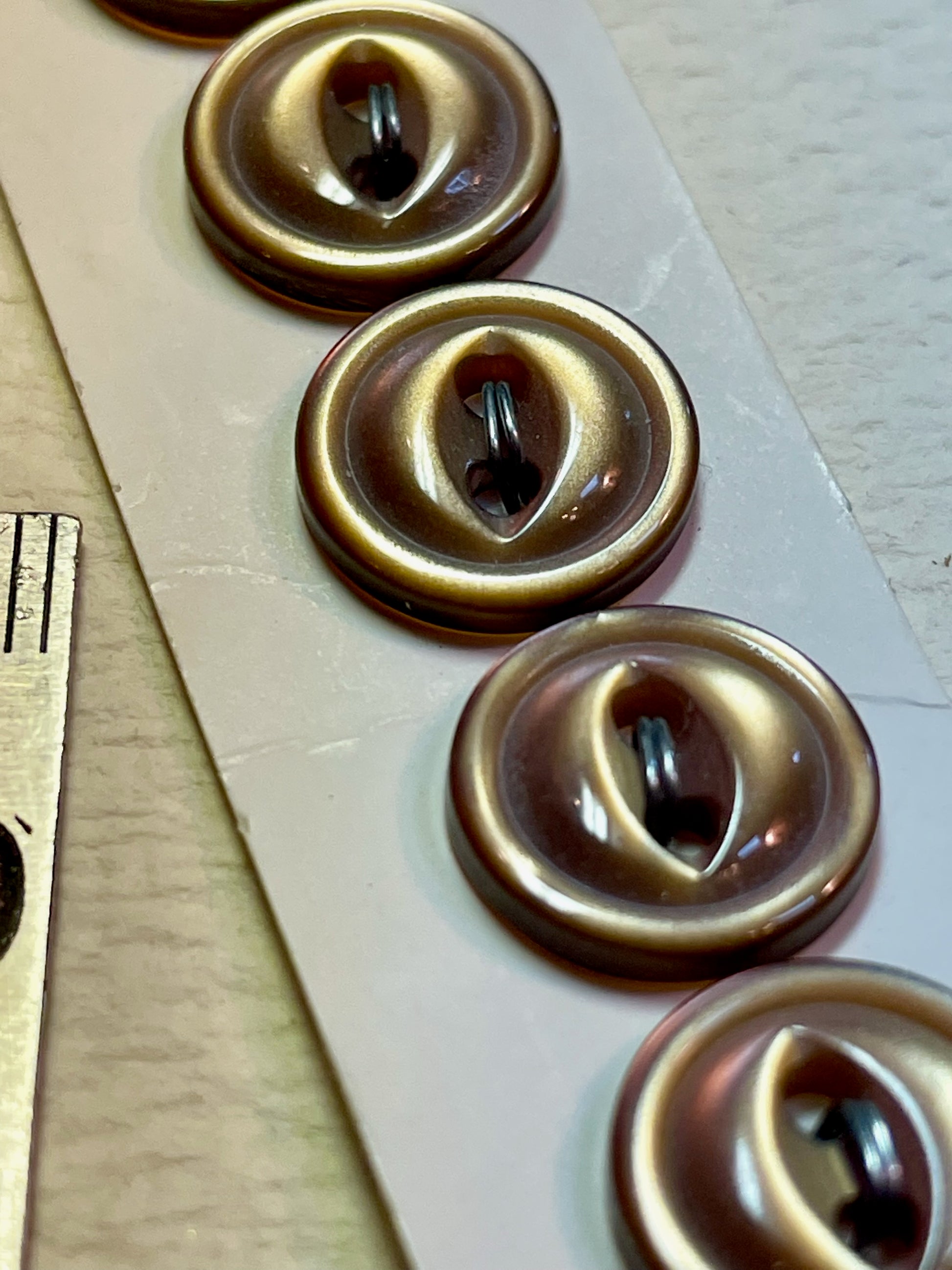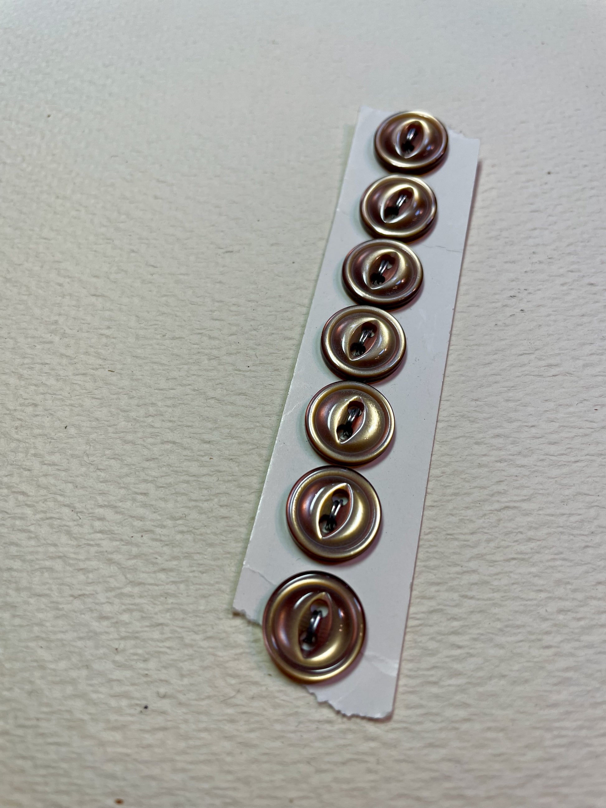 7 brown 1960s vtg plastic buttons | 2 hole flat | size 11/0.27" | new old stock