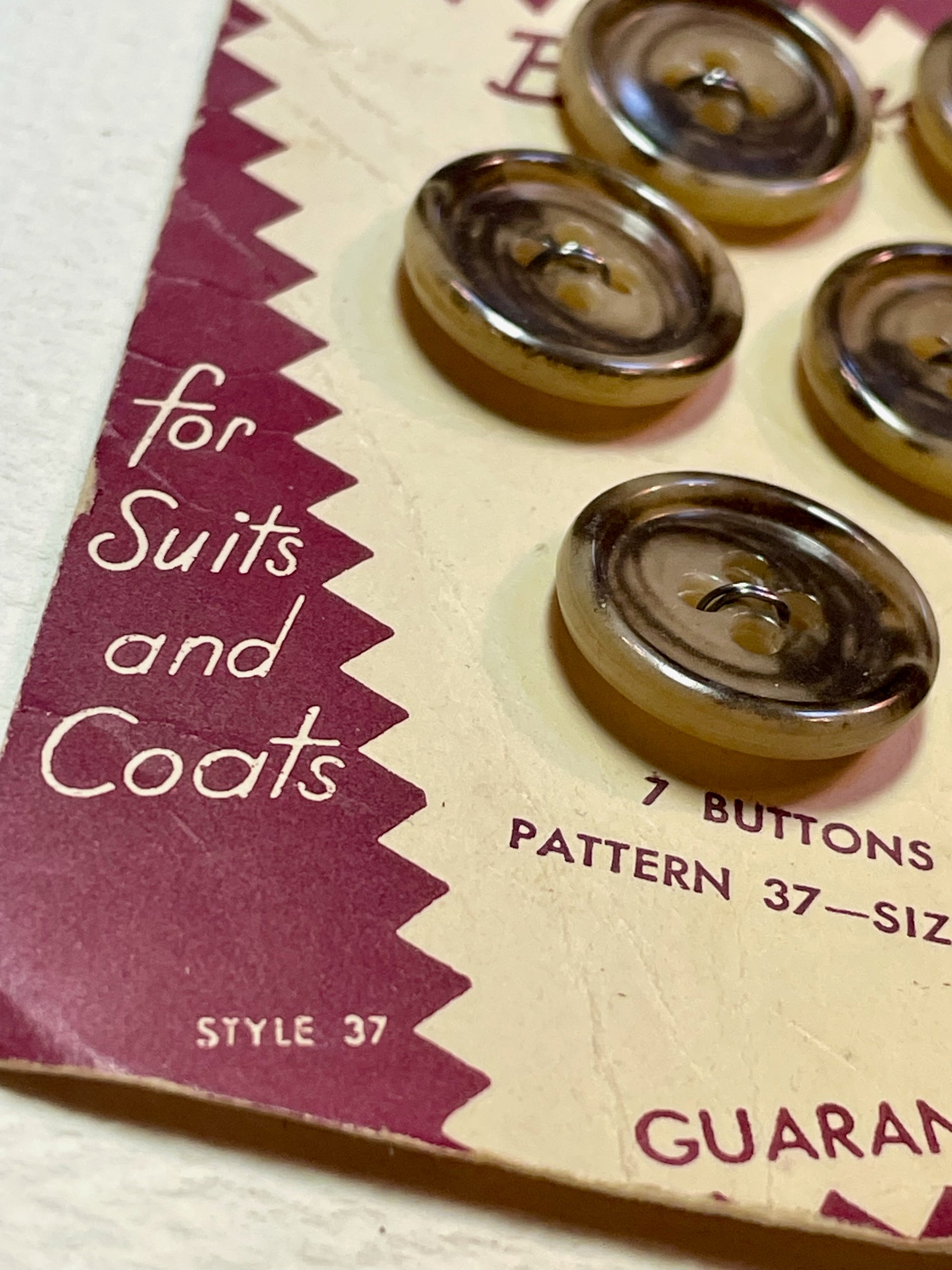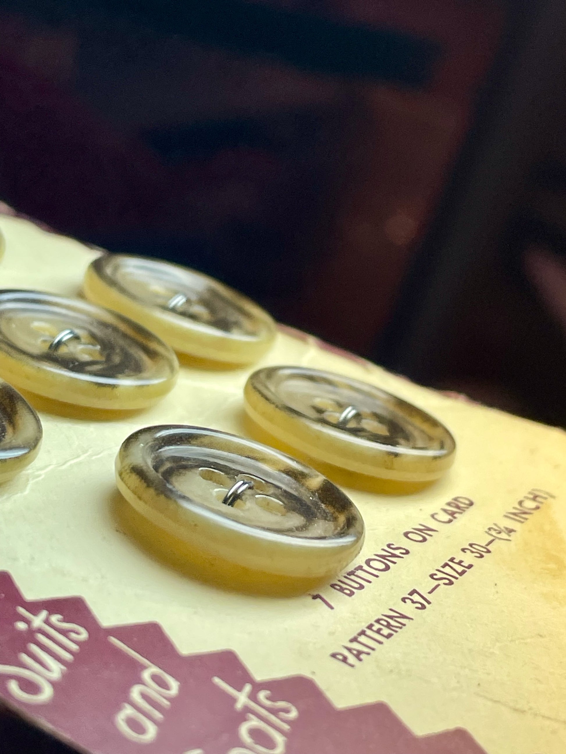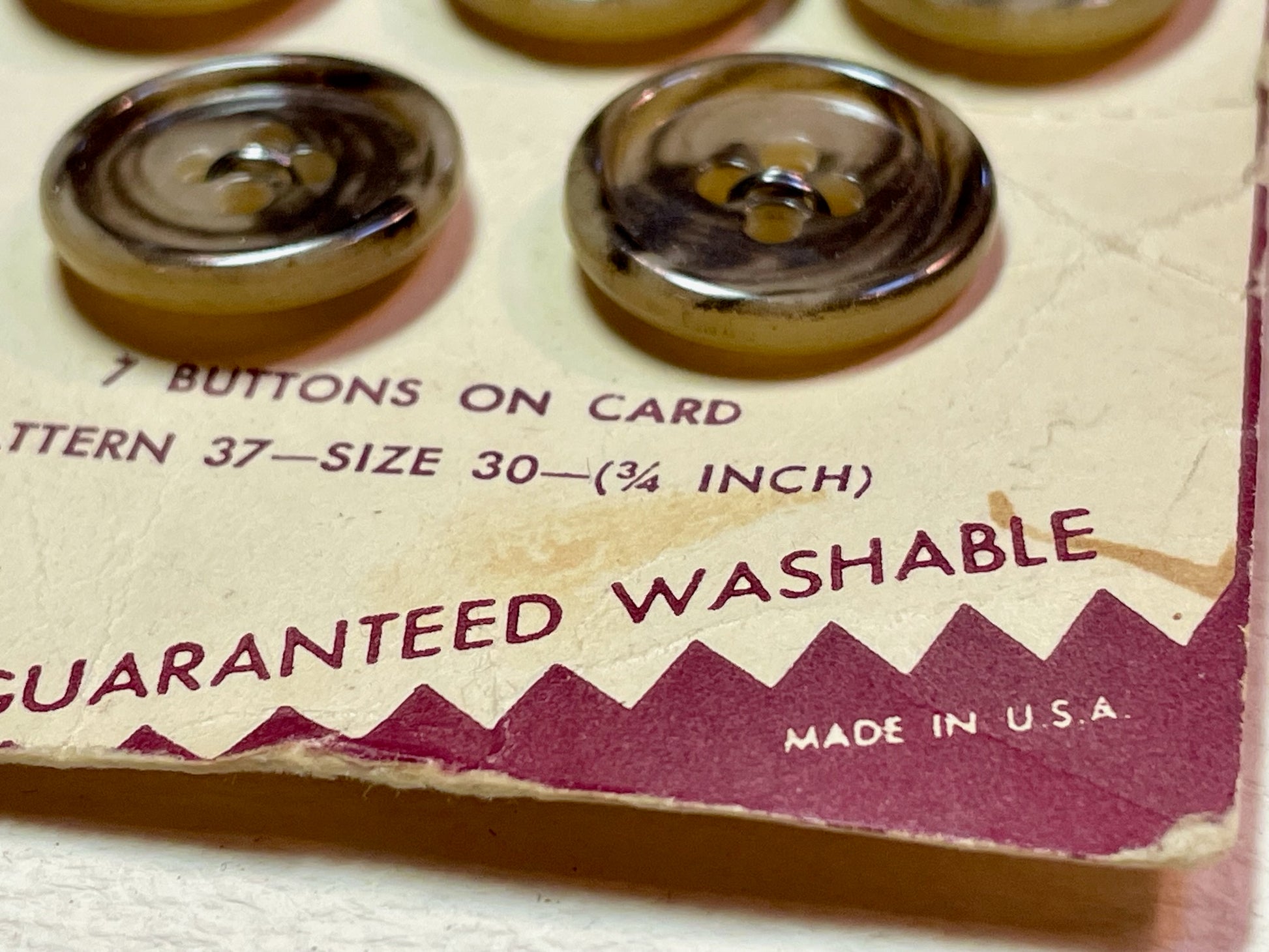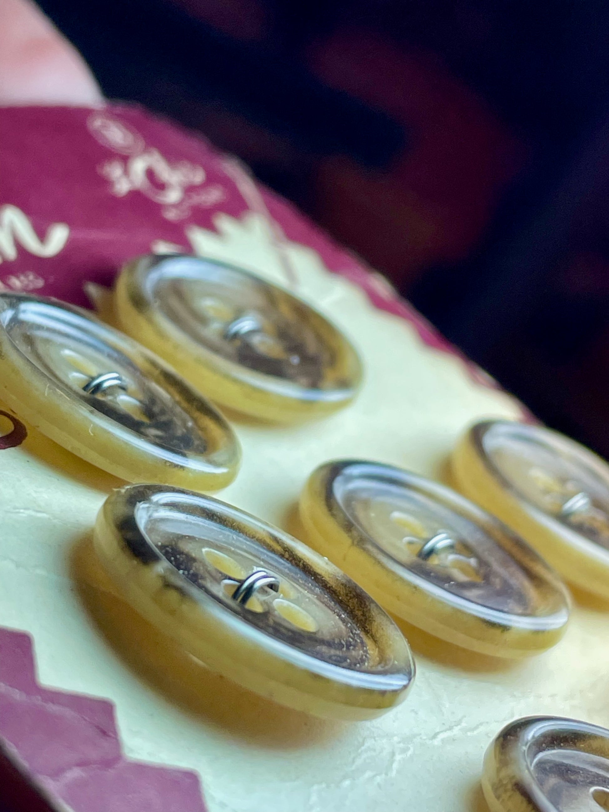 7 brown 1960s vtg Lavahorn faux horn buttons | 4 hole flat | size 30/0.75" | new old stock | made in USA