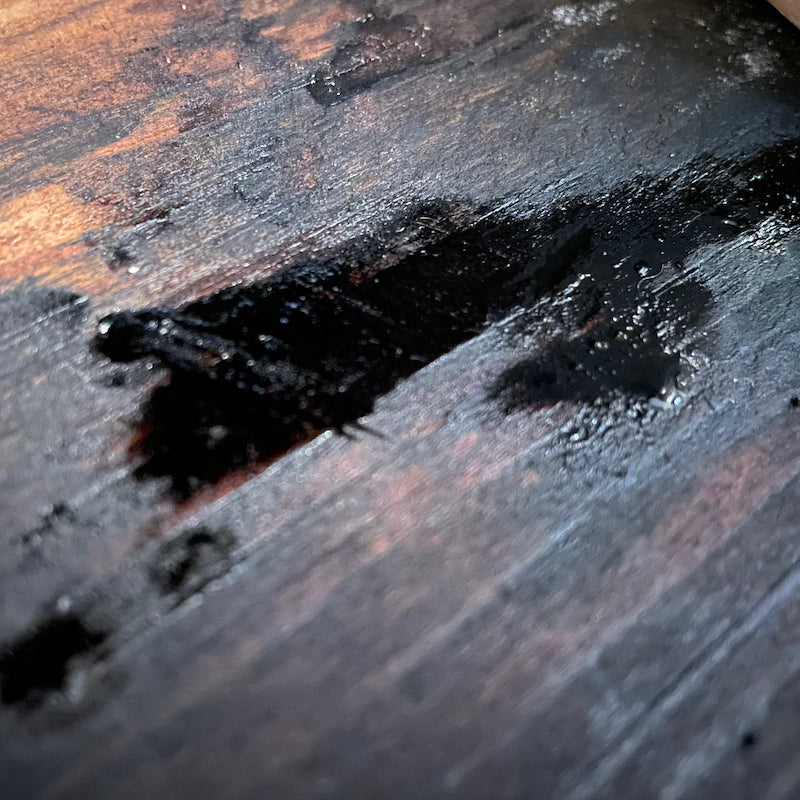 We've been writing thank you notes using our own scavenged-and-cooked-down black walnut ink for years now. With this year under our belt and a second season of walnuts having landed, we've had a chance to test longevity, consider viability, and experiment with process: a bit of estate-salvaged isopropyl keeps this product both shelf-stable and on brand with our 100% reuse premise.