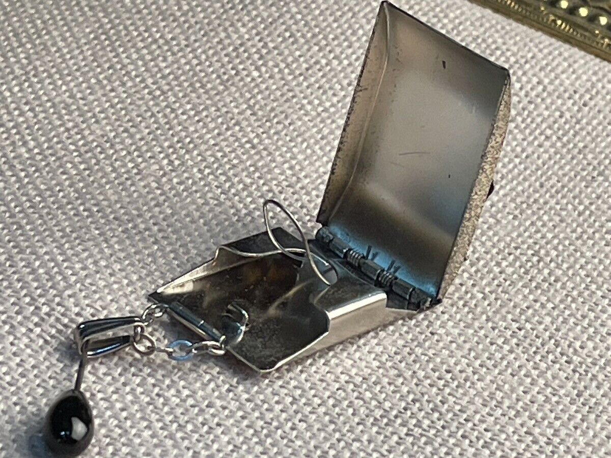 Chatelaine Case Stamp Coin Holder Stash Locket Pendant tiny wearable vintage silver