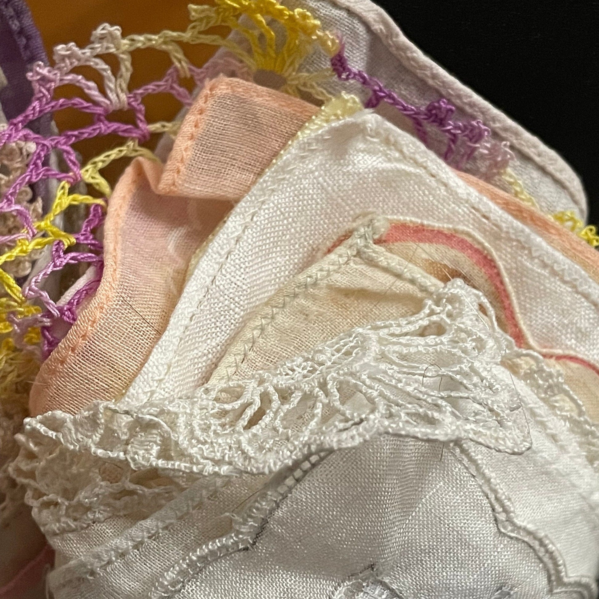 bundle of ten vintage cotton handkerchiefs: cutter or mending grade for upcycling, art, repair, or not-precious use as-is