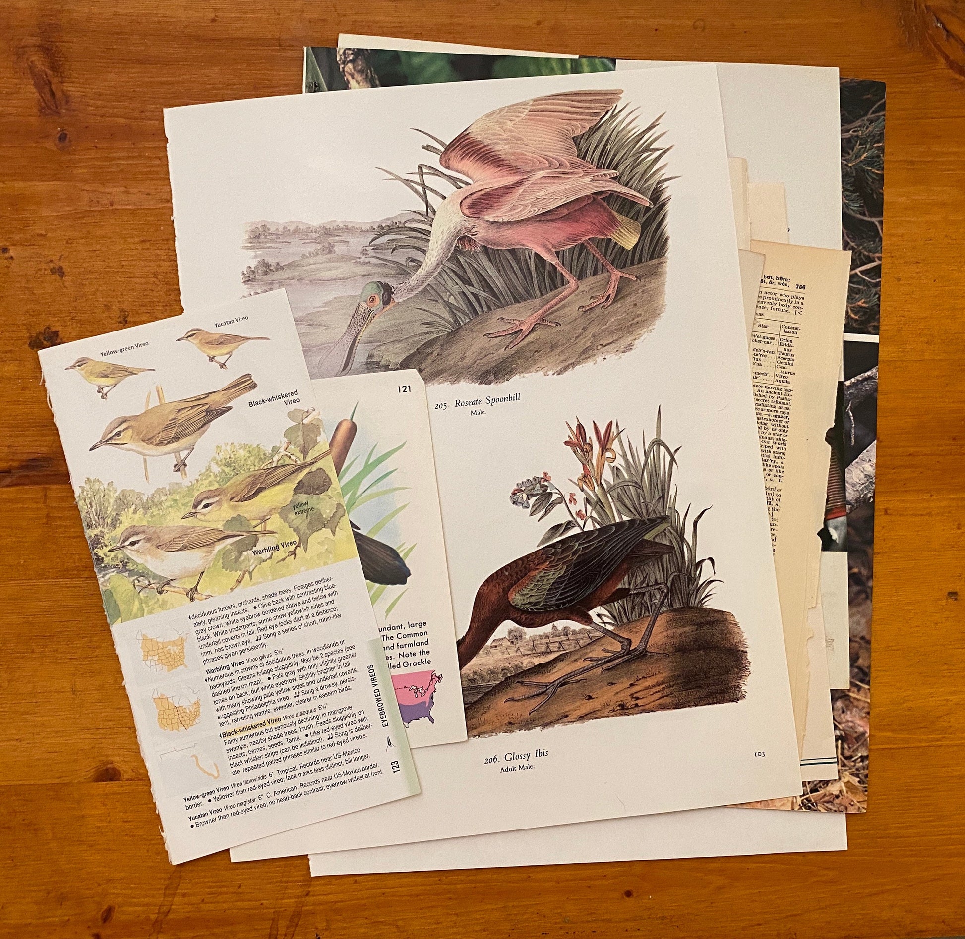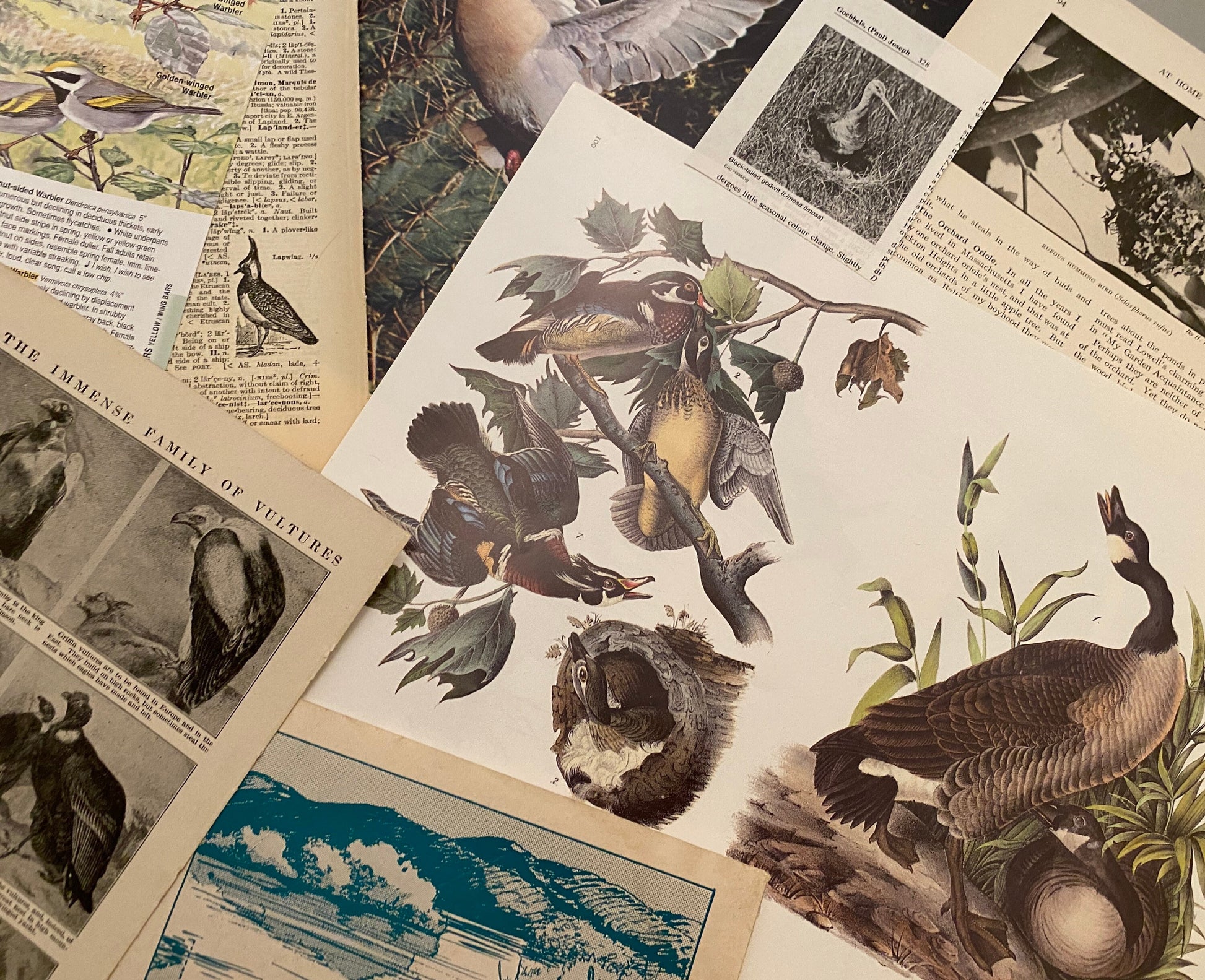 Papers for repurposing: 1/8 lb mix of vintage bird pages and prints