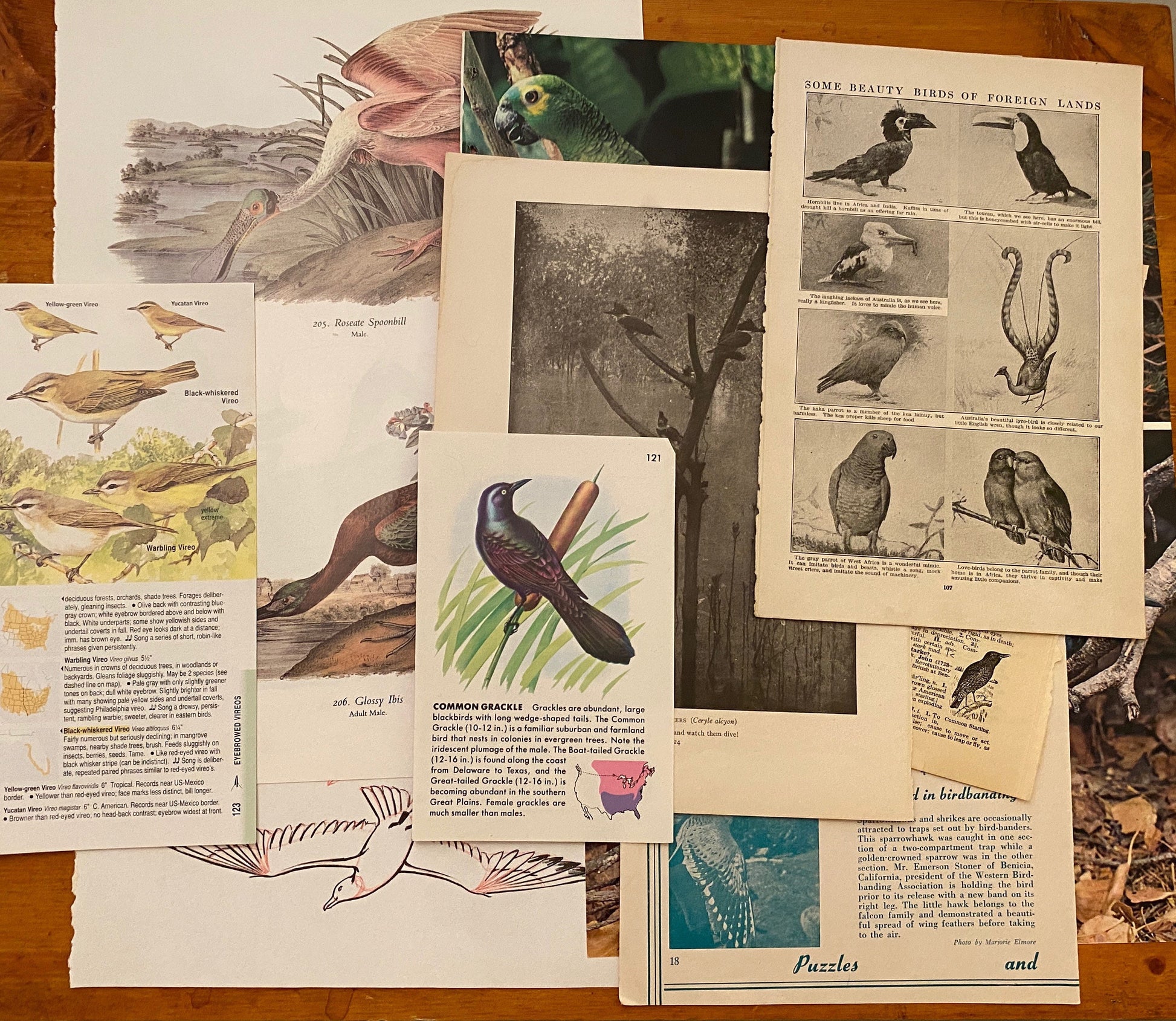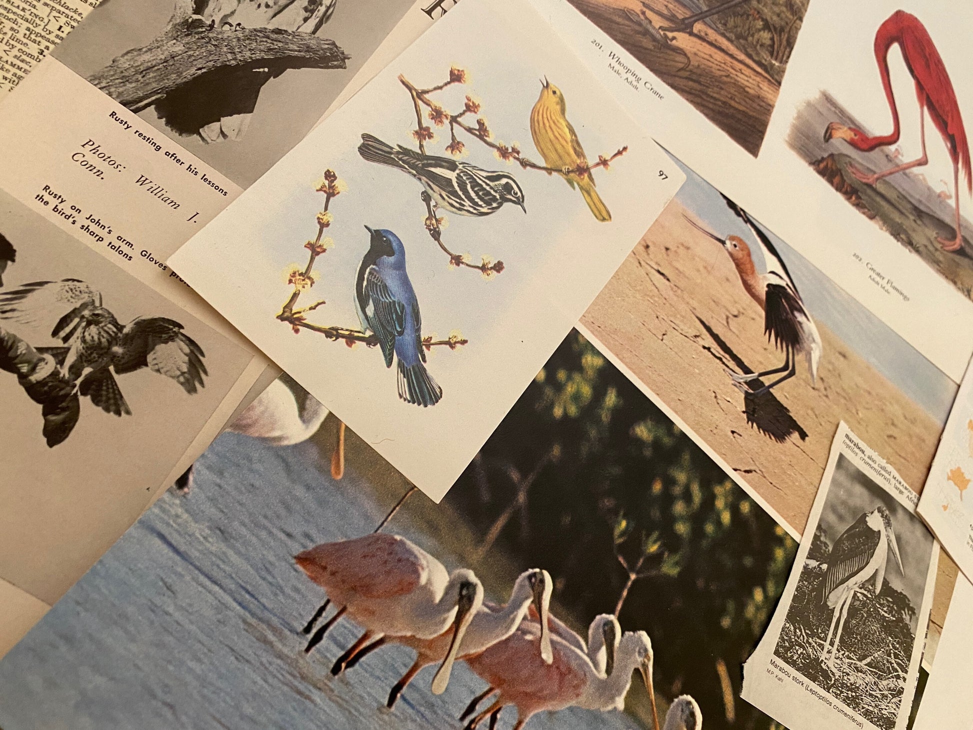 1/8 pound of vintage book/magazine pages featuring birds of all types – perfect for collage art, junk journals, and scrapbooking.