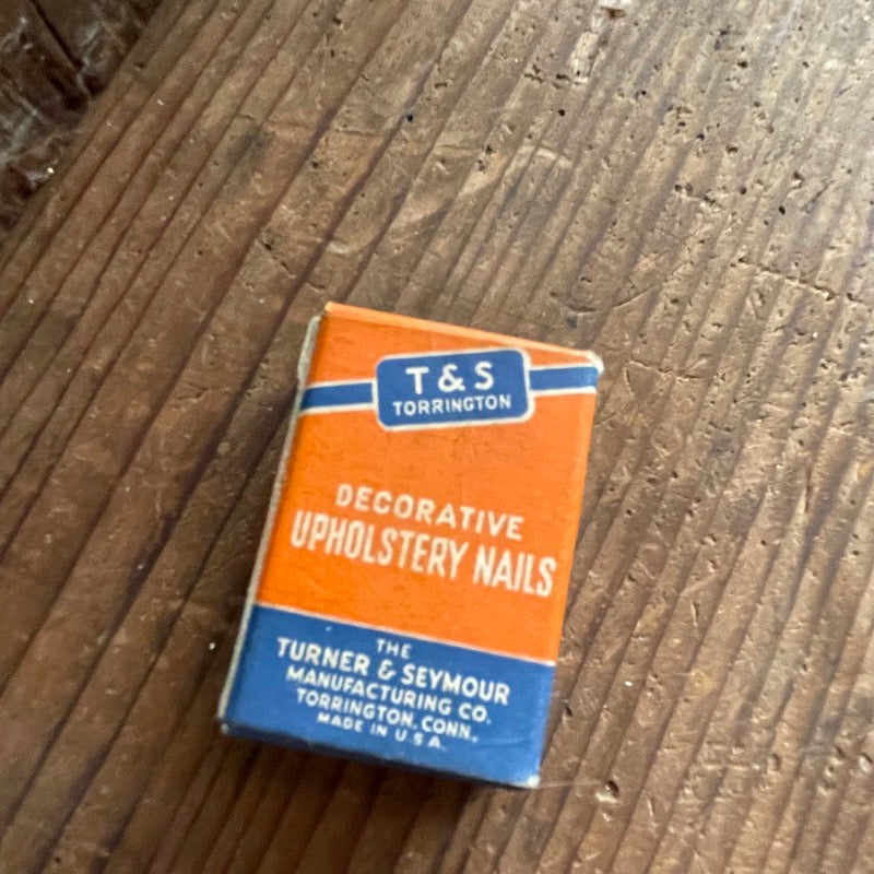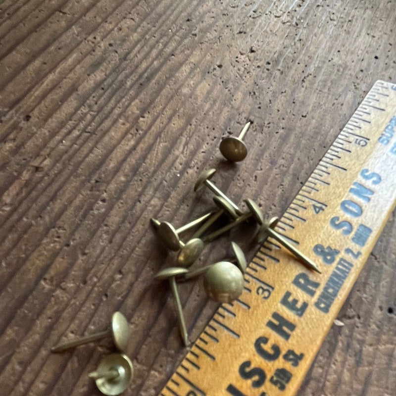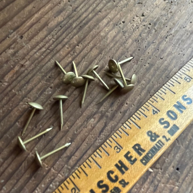 New old stock: one dozen decorative brass upholstery nails .3" head diameter / .67" length