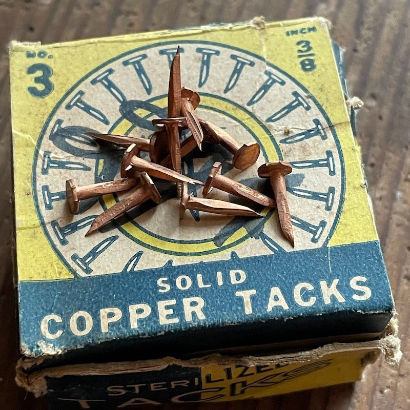 New old stock: one dozen (12) 3/8" copper cut tacks