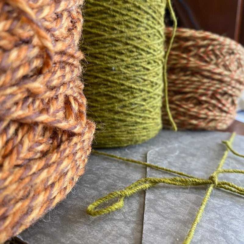 It’s funny how basic string marketed/sold for multiple purposes, all looks and works well for so many other purposes... we love this new old stock carpet yarn for securing products for shipping and gift giving... choosing this post-consumer-sourced product (instead of buying brand new twine) means avoiding the creation of manufacturing demand and related emissions. These are synthetic yarns - best suited to purposes that don't involve frequent laundering.