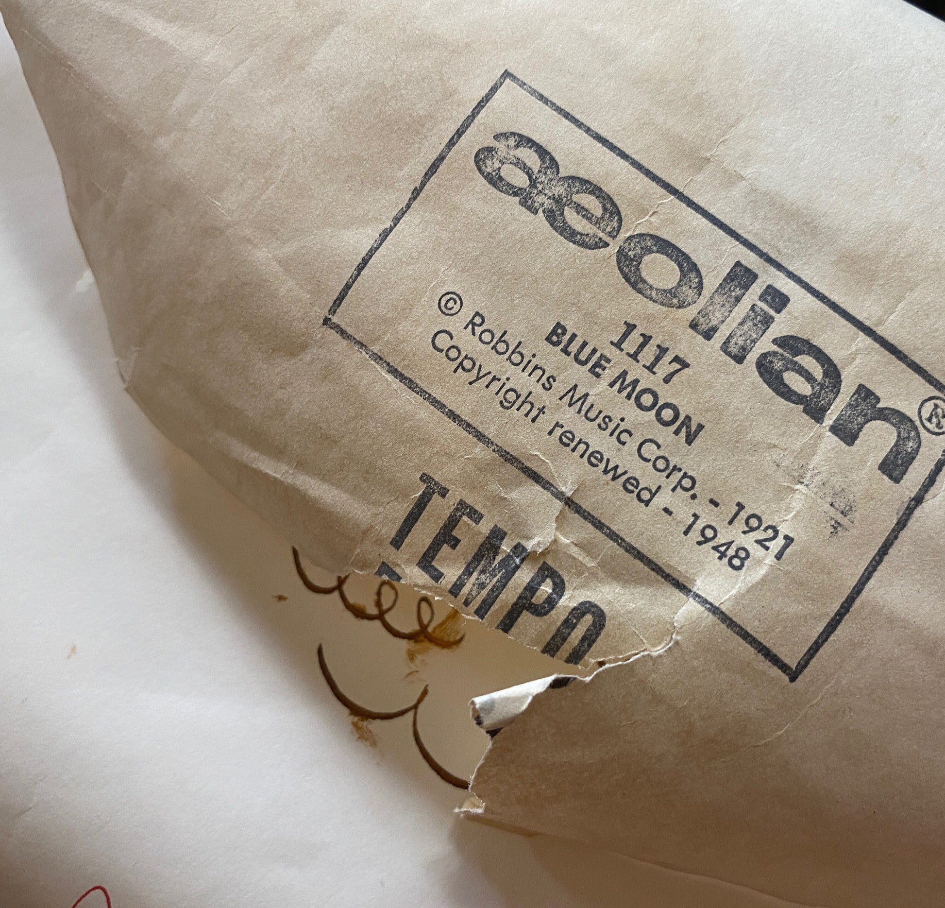 This paper fascinated me then as it does now: handle carefully, lest you tear an edge or ruin the lace-like punched holes. Start slow, finish slow - you didn't want to be the one who tore off the little ring at the beginning or kept pumping air through the foot bellows as the song ended, pulling a taped inner edge from its sturdy cardboard core. You may see evidence of such damage - and/or sections with amateur repairs - in the roll(s) you receive - we want the usable ones to be useful in their current state when possible.