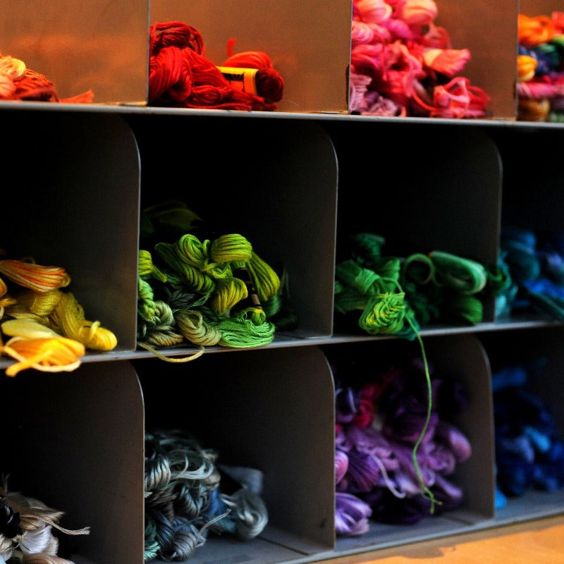 'Rainbow PLUS' option: when we acquire secondhand lots of embroidery floss, there are often partial skeins and project-length pieces in with the new old stock - some folks care about things looking 'new' and others, less so. If you'd like to increase your color range to include a wider swath of colors, choose 'Rainbow PLUS' and we'll pull together 30 grams of gorgeousness at the same price as a 12 skein rainbow (20% more thread by weight).