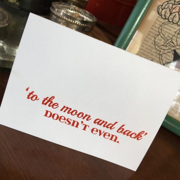 Embossed greeting card: 'To the moon & back' doesn't even.