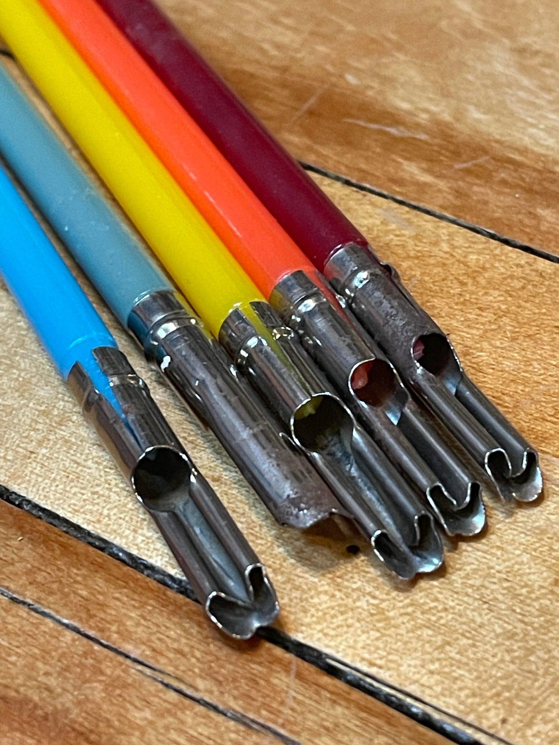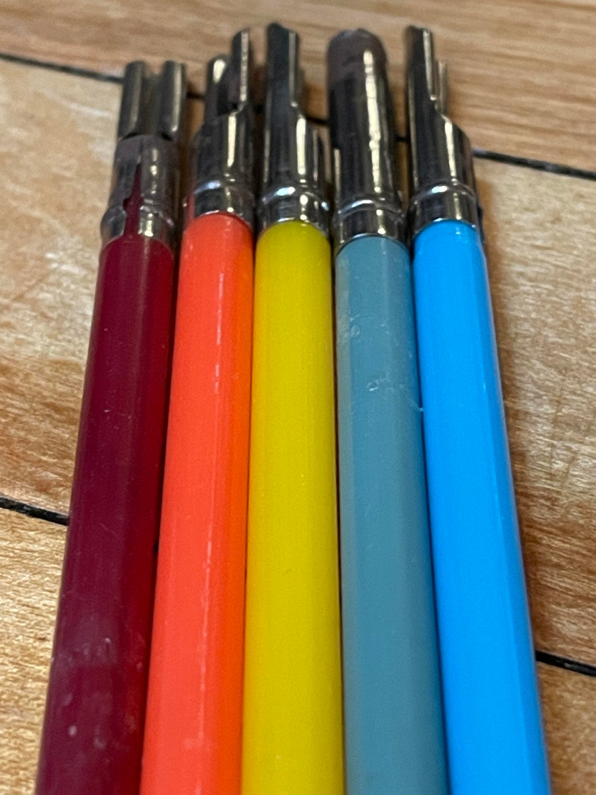 At just 4 3/4" long, these 1960s new old stock pen holders (in colorful of-the-era plastique) are perfect for on-the-go letter writing. We'll include one of our favorite writing nibs.