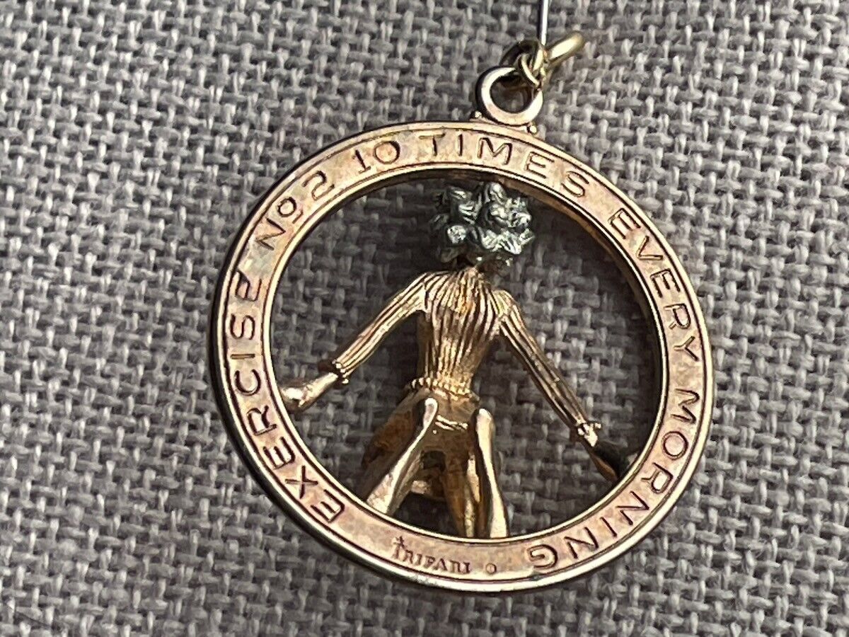 While we've seen a bunch of 'Exercise No 1' (Jumping Rope) medallion pendants (and a solitary No. 3 pendant, as well), this one - Exercise No. 2 - is elusive enough that Google has given us no indication that there are others in circulation. Priced accordingly.