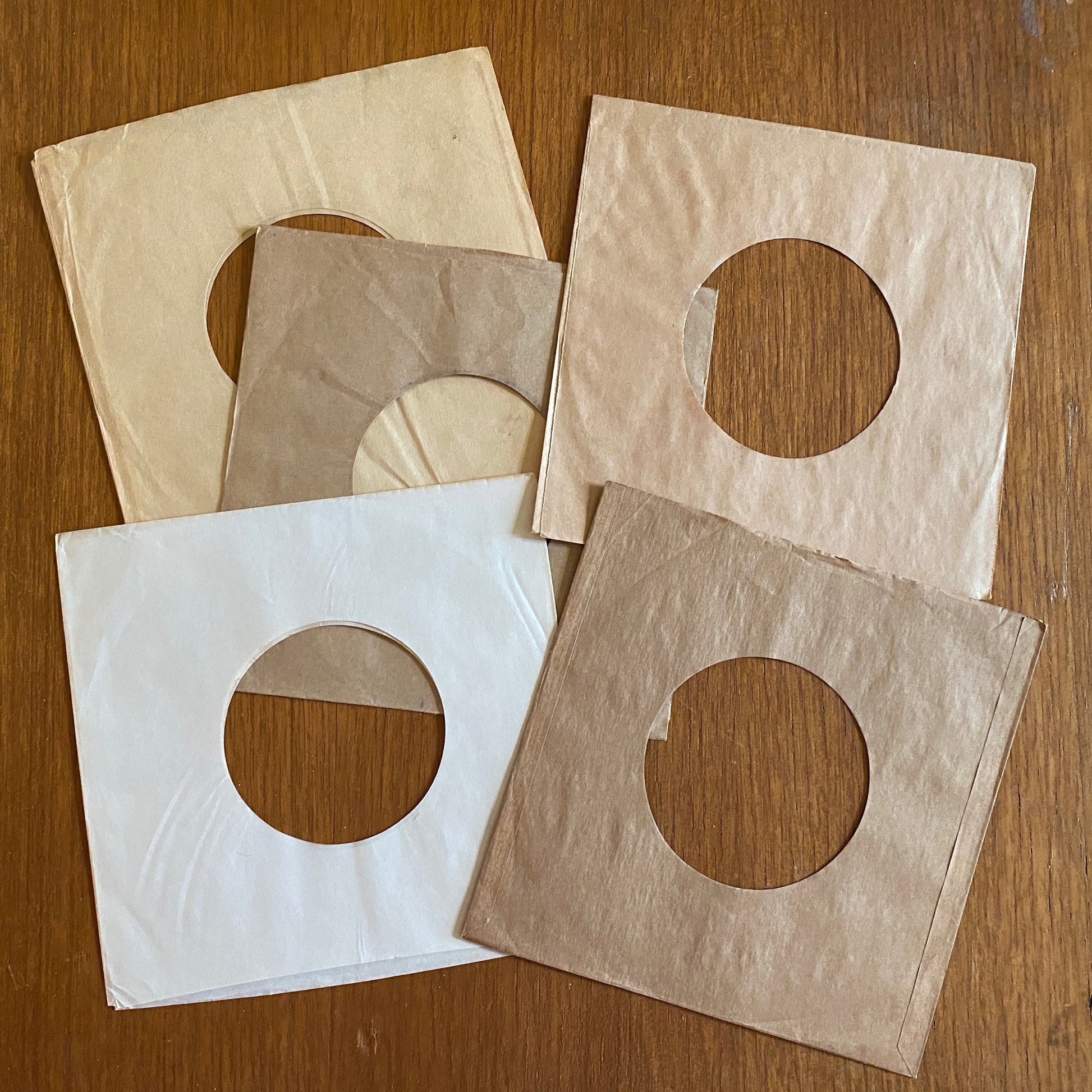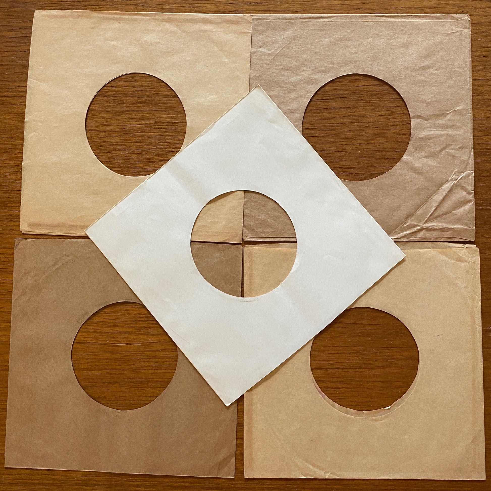 Set of 5 original vintage 1950s album sleeves for 45 records (so, roughly 7" square). Mostly kraft brown - mostly blank, though there may be a little scribble here or a stamp there: these are older than we are, after all.