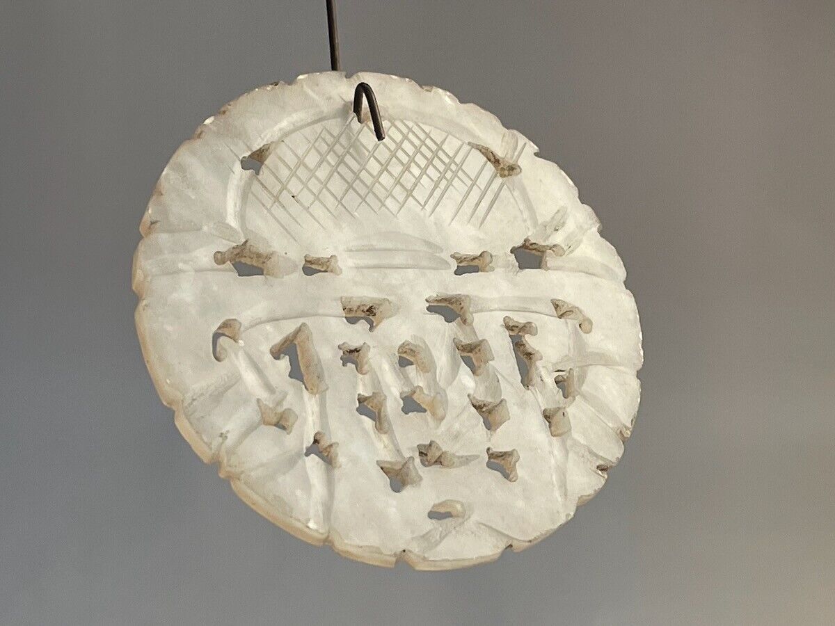 Estate piece, 2" diameter hand carved nephrite medallion. Just add a silk cord and you're set. Please examine photos carefully - condition is as reflected in photos. Thanks!