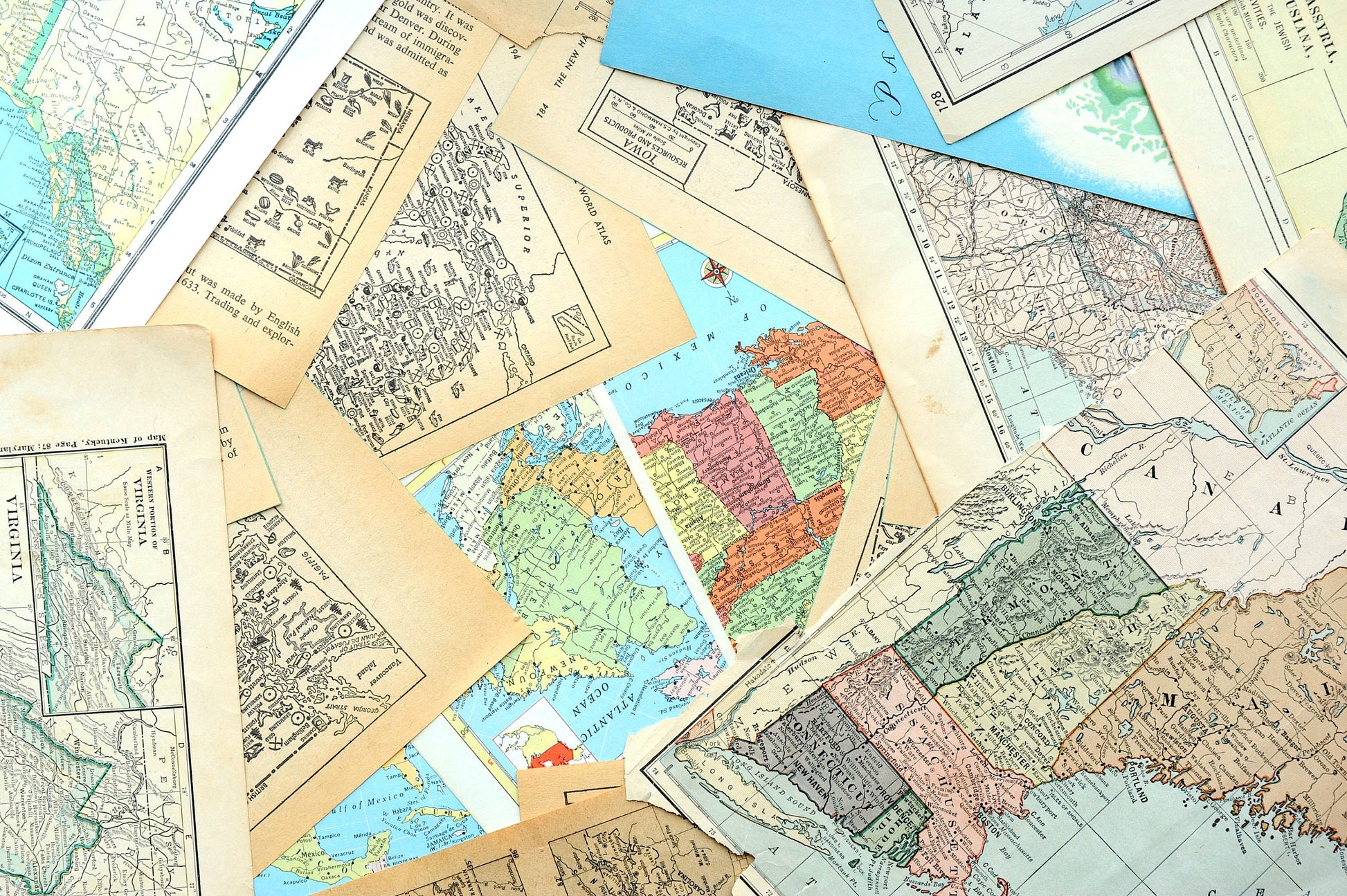 Papers for repurposing: 1/8 lb mix of vintage map & atlas pages