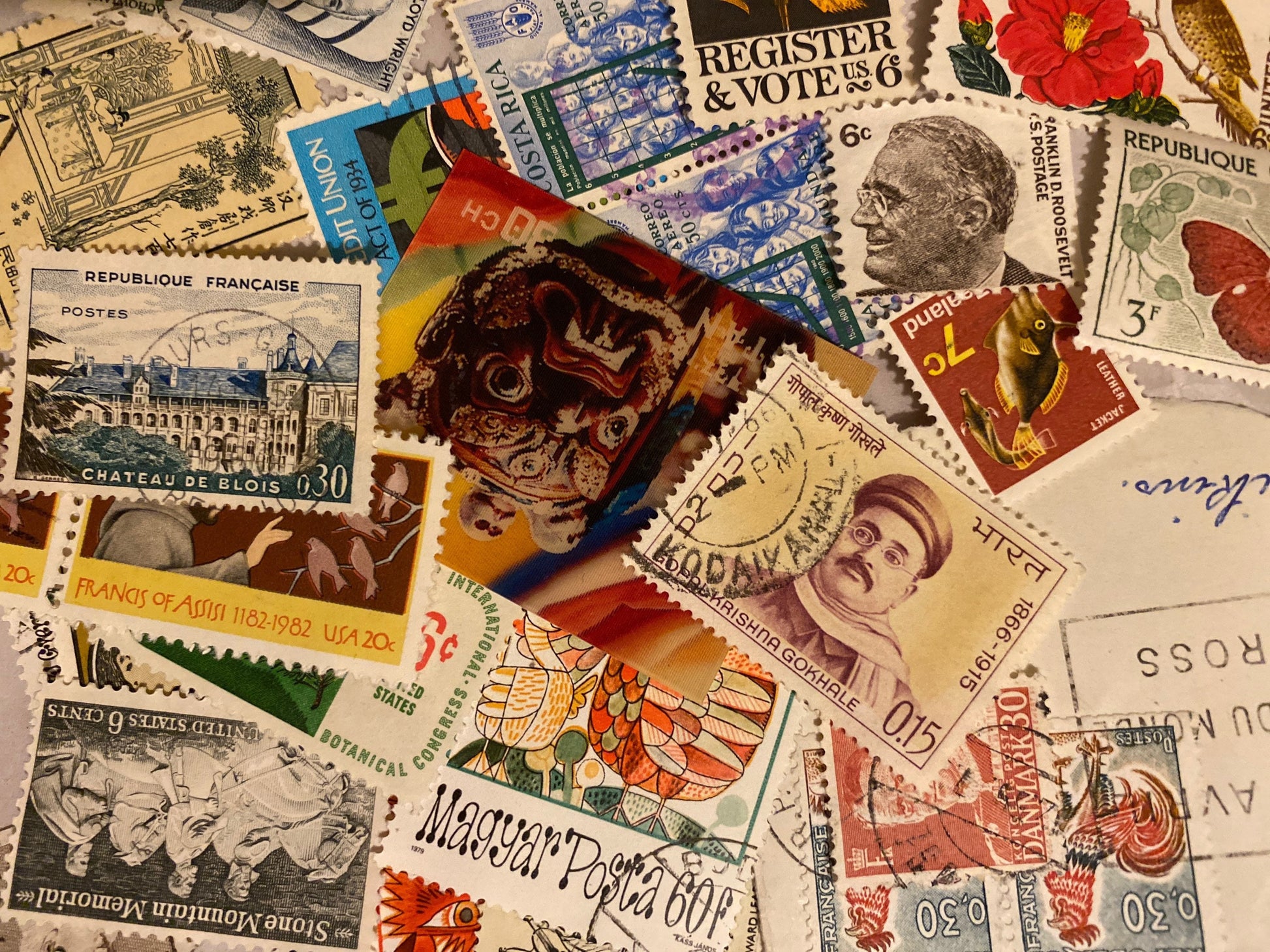 10 gram assortment (+/- 40-50) vintage used postage stamps mix