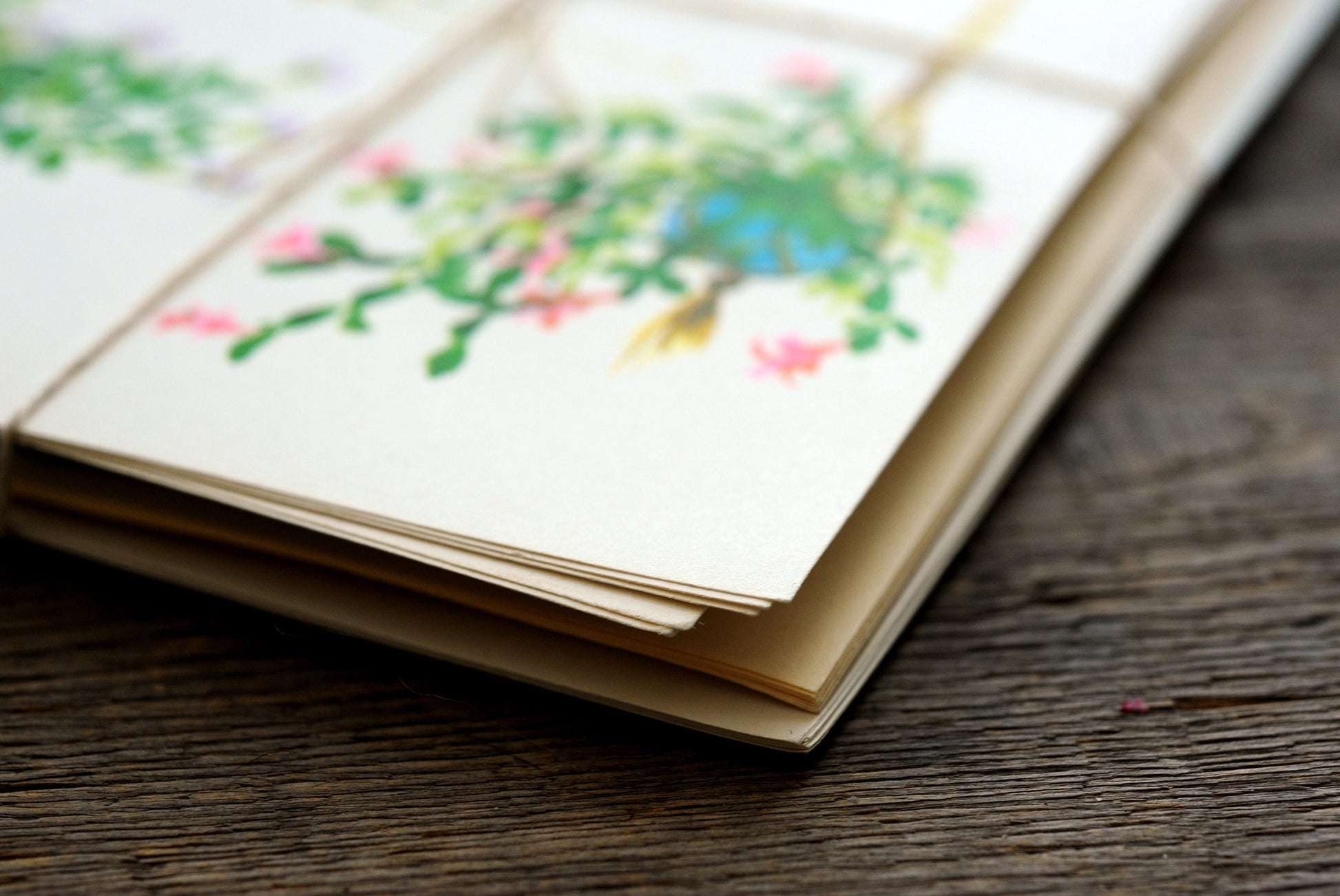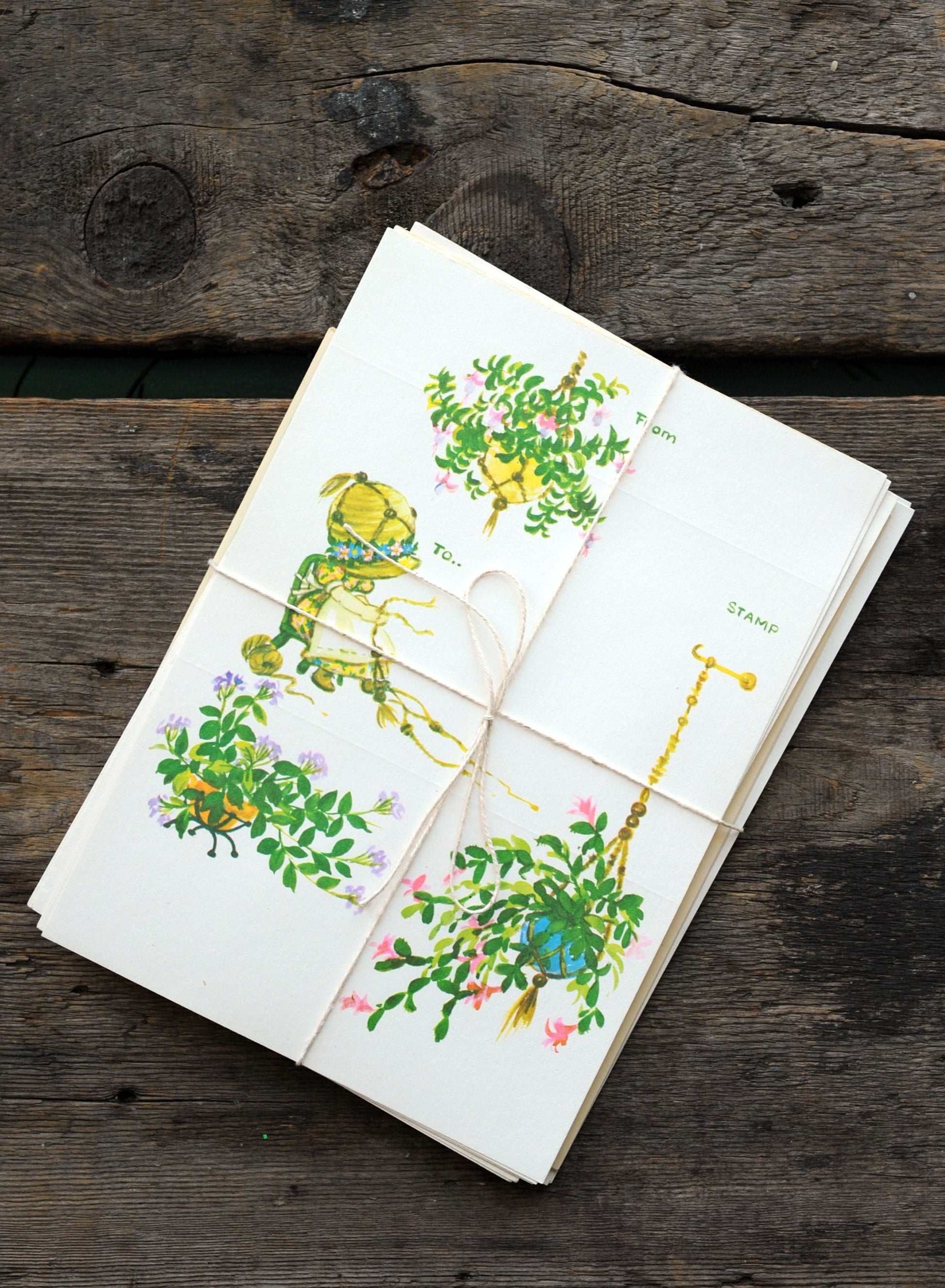 A surprise mix of papers, note cards and envelopes sufficient for sending one dozen snail-mail missives via US Post.
