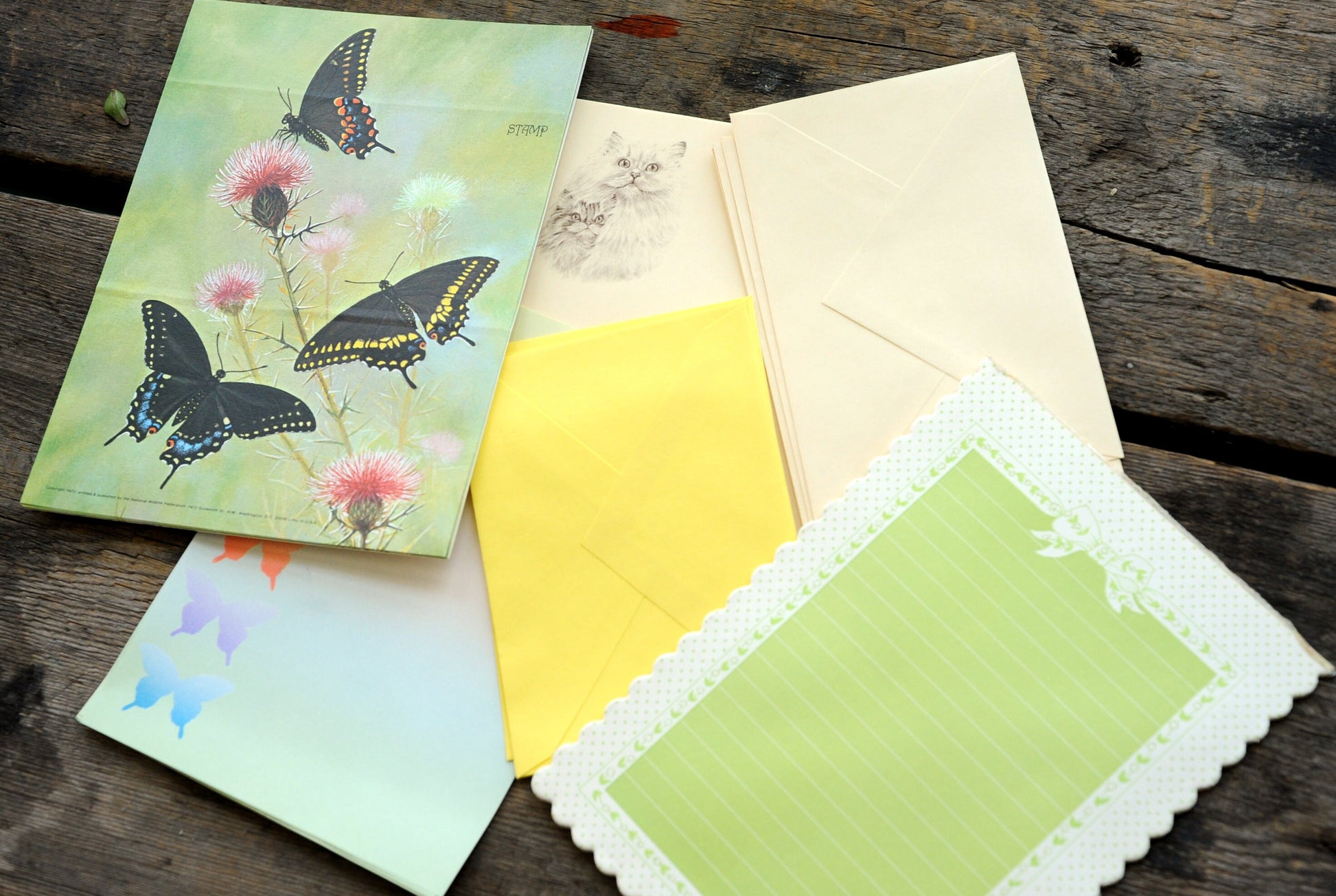 12 piece vintage stationery for letters, invitations, snail mail / surprise bundle of vintage paper & envelopes