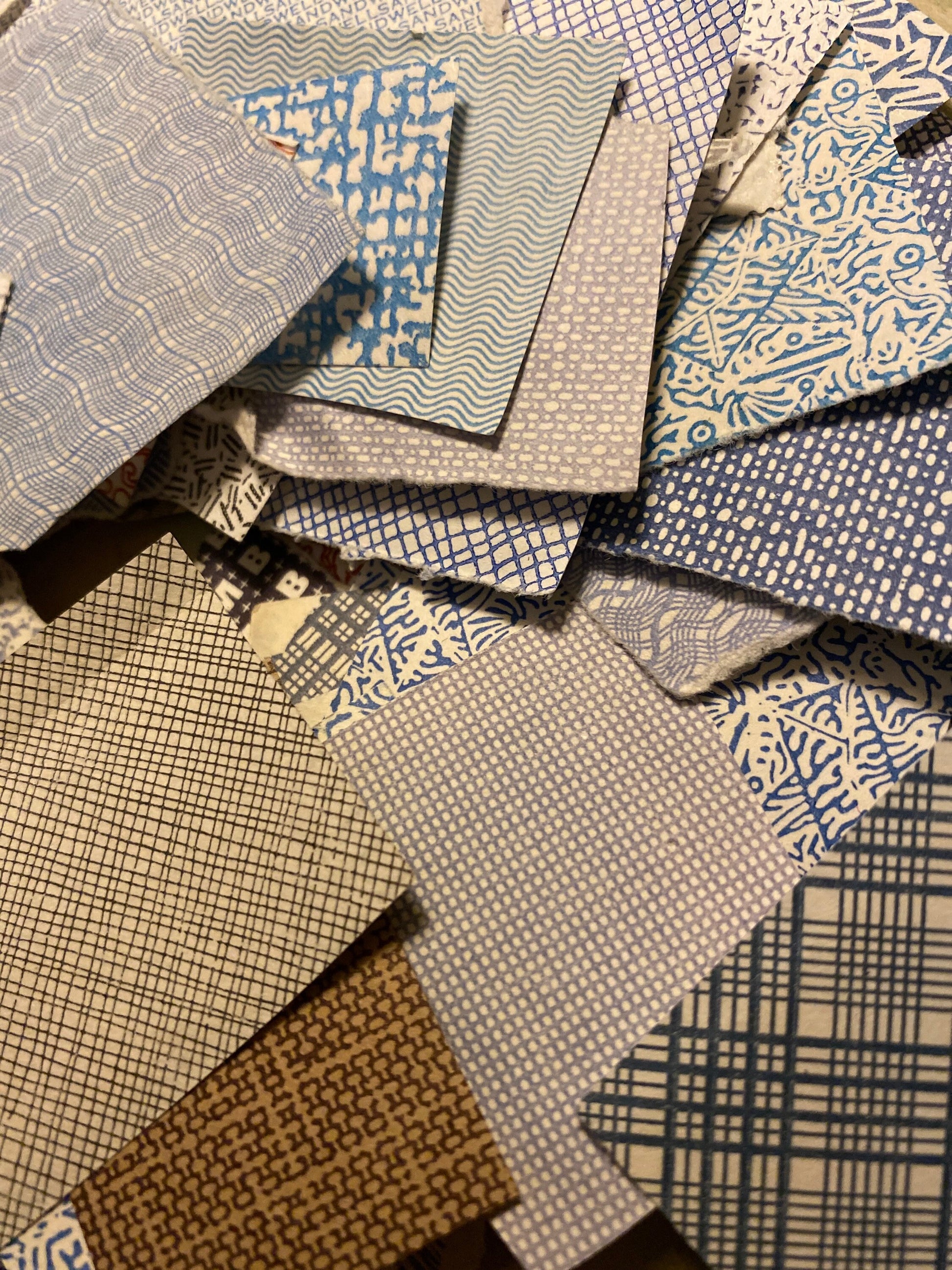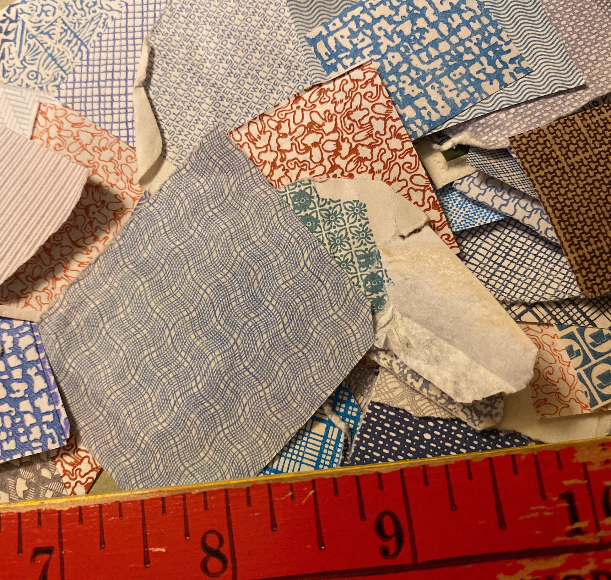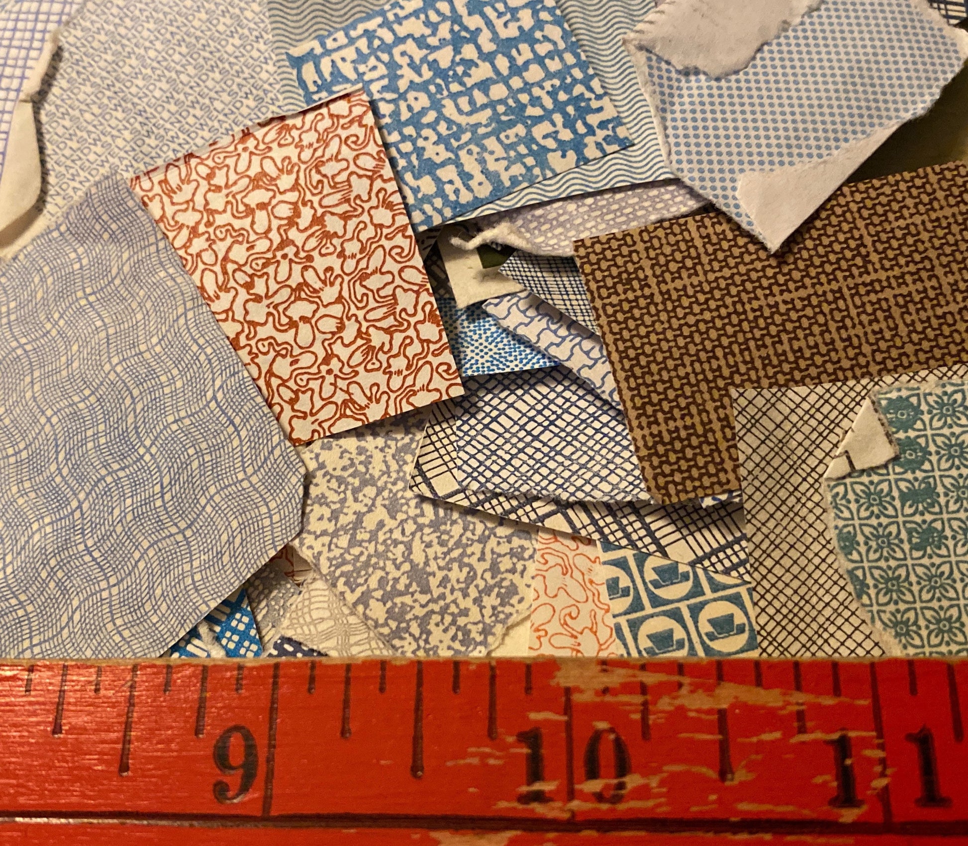 Consider using these tiny patterns in bookshelf room boxes, collage jewelry, or smash books/ junk journals. We’re smitten with our friend’s confetti-style paper garland, for example, and Pinterest ideas abound... What might *you* do with them?