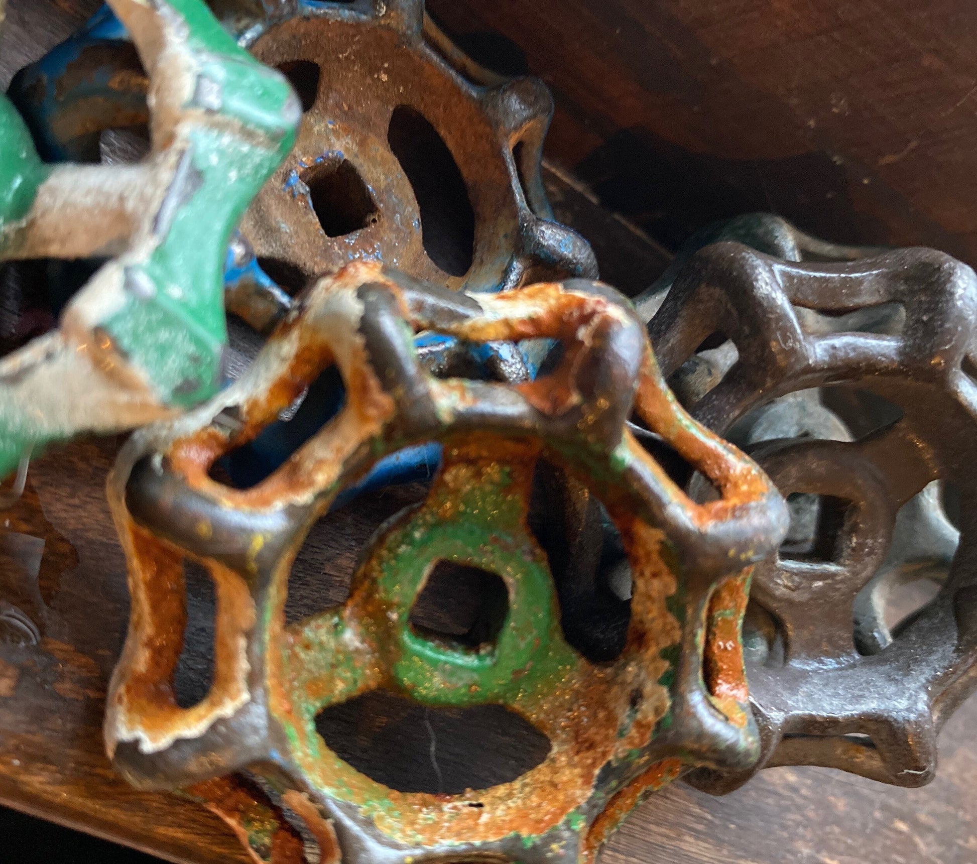 Vintage valve handles — ready for your next home improvement or DIY project. Choose your color, or let us surprise you! Handles are between 2″ and 2.5″ in diameter.